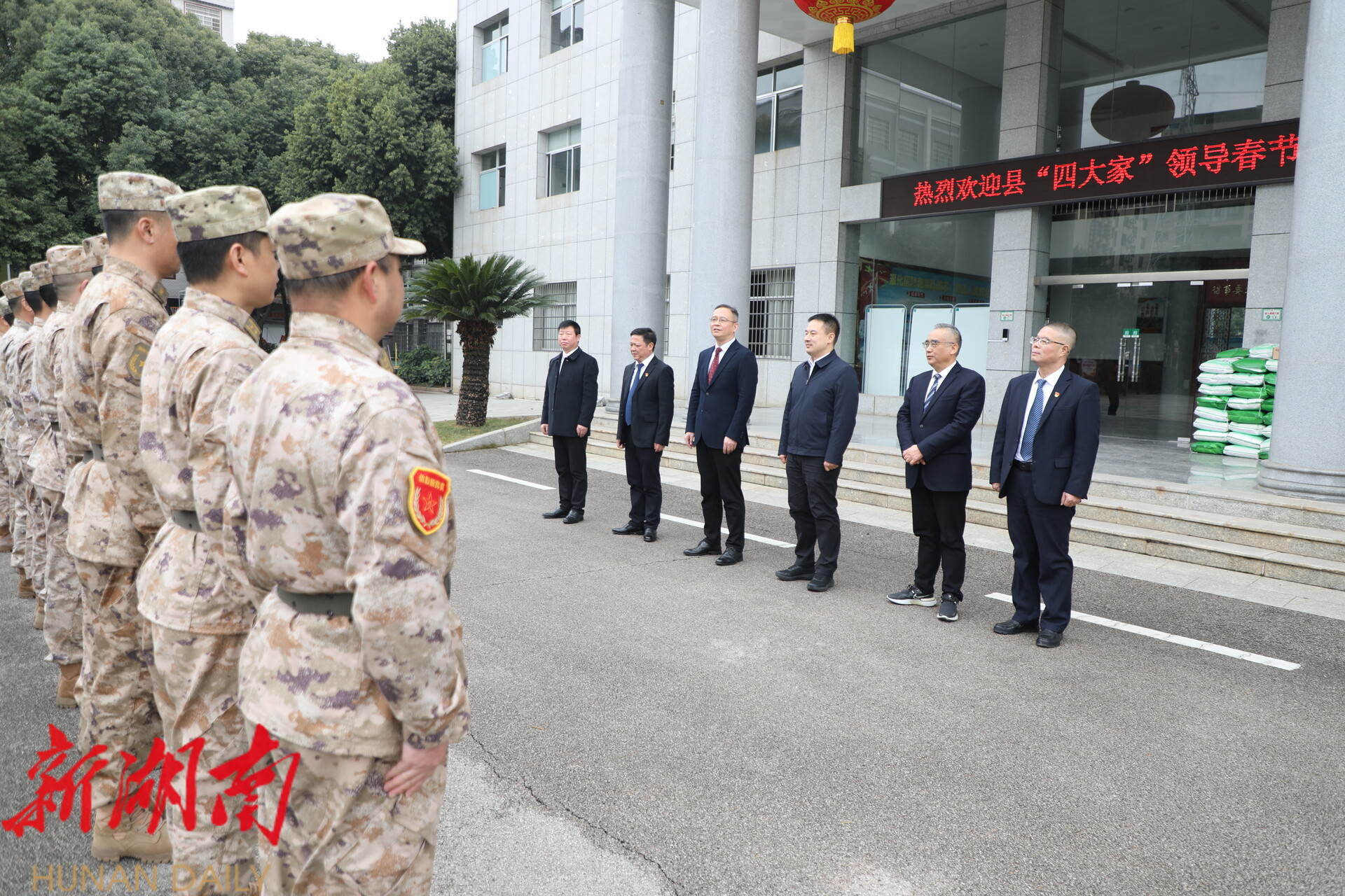 湖南日报·新湖南客户端2月13日讯(通讯员 李严军) 丙午马年春节来临之际,2月12日,县委书记、县人武部党委第一书记毛政,县委副书记、县长林亮亮等“四大家”领导,集中走访慰问坚守一线的驻宁部队官兵、消防指战员、公安民警和交警,给他们送去党和政府的殷切关怀,致以新春的美好祝福和诚挚问候。