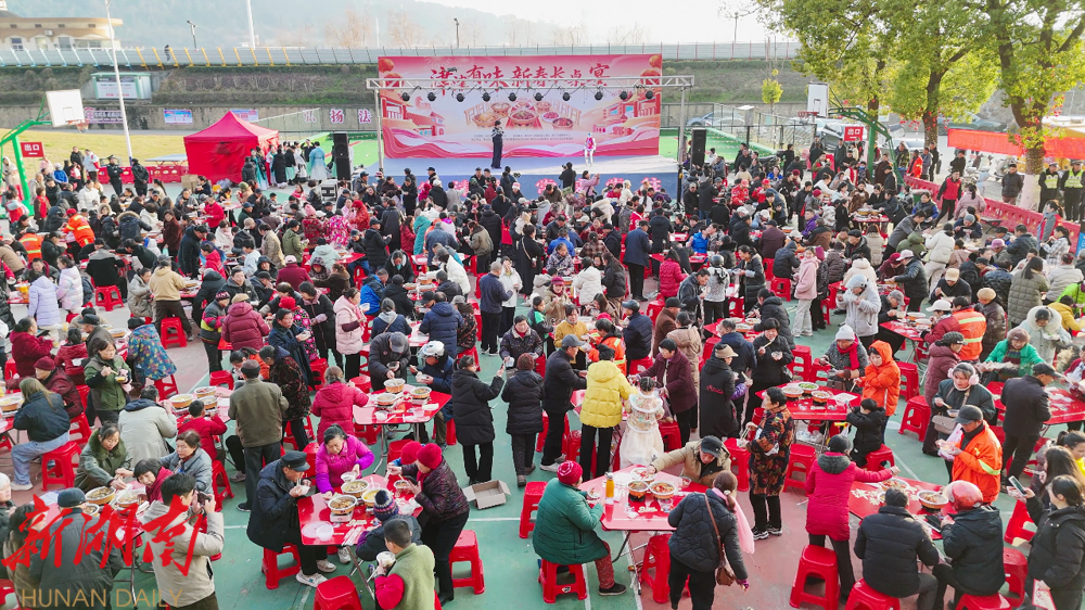 活动现场,60余张方桌整齐摆放,近400名市民围坐一堂,共同品尝200道津市本土特色美食。腊肉炖腊香干、桂花鱼火锅、清炖牛肉、盐菜炖肉、鱼杂火锅、酱香扇子骨、盐水肉下青菜……一道道钵子菜热气腾腾,年味四溢。