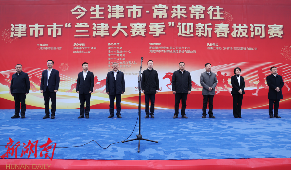 津市融媒2026年2月13日讯(记者:朱万琳 张为 刘娟 汪子仪)2月12日,2026年津市市“兰津大赛季”迎新春拔河赛在市工人文化宫举行。市委书记彭子晟参加启动仪式并宣布比赛正式开始,市委副书记、市长李军林为活动致辞。
