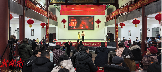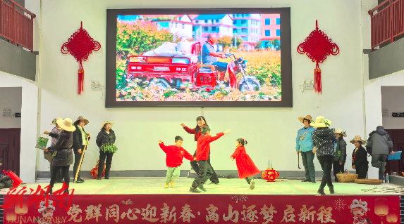 新桂阳2月13日讯(通讯员 高崇善)灯笼高挂映村头,鼓点声声醉腊月。2月11日晚,荷叶镇高山村将村晚舞台搭在村民活动中心的方寸天地间,“党群同心迎新春・高山逐梦启新程” 春节联欢晚会浓情开演。没有华丽的舞美,没有专业的班底,唯有党群同心的热乎劲和乡土里的真滋味,汇聚成阵阵暖意,在文艺赋美乡村的生动实践中直抵人心。
