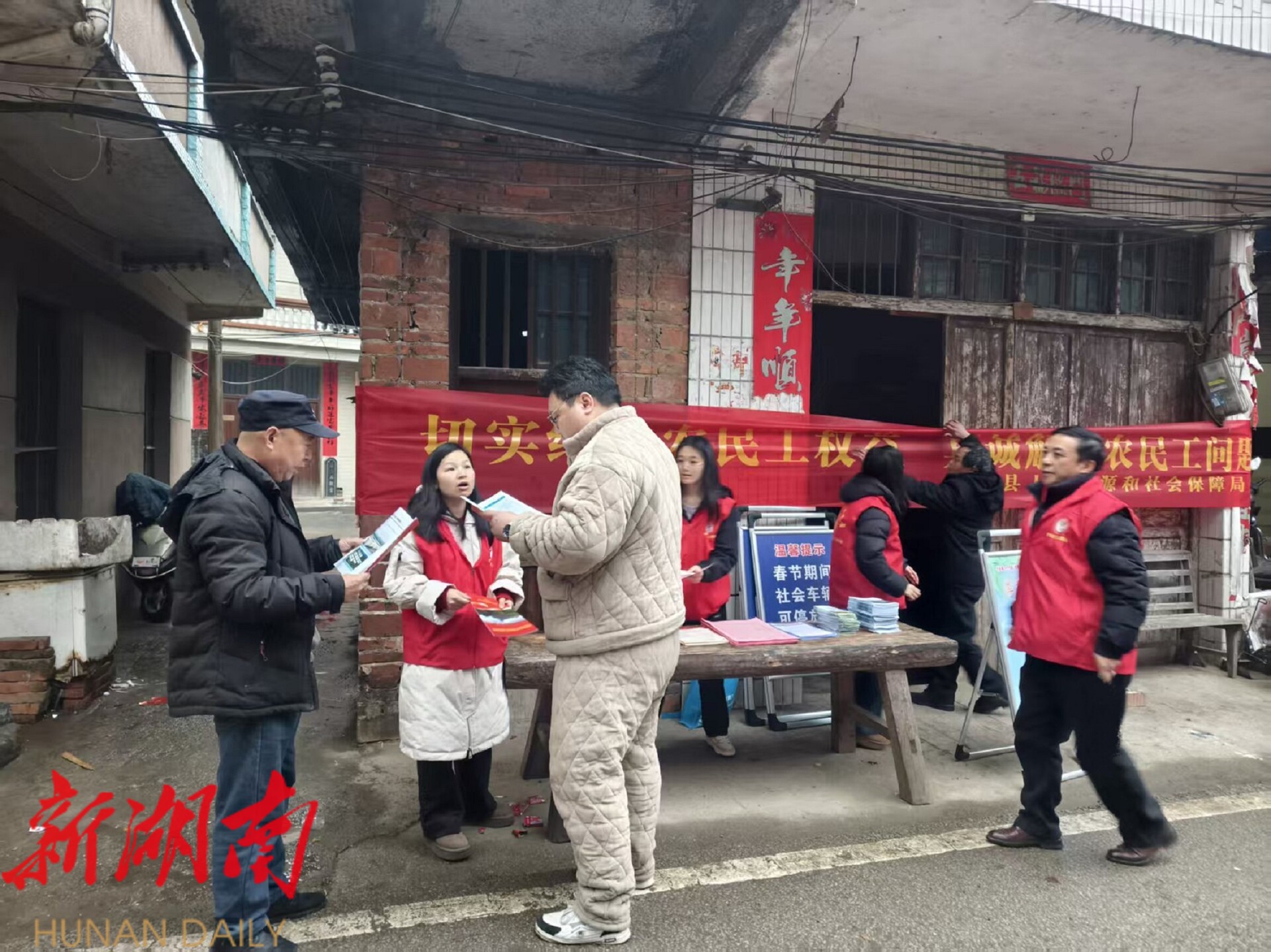 湖南日报·新湖南客户端2月13日讯(通讯员 蒋海珍) 近日,宁远县桐木漯瑶族乡依托赶集日,组织开展就业社保政策宣传暨2026年“春风行动”招聘宣传活动,把惠民政策、就业岗位与维权服务送到群众家门口。