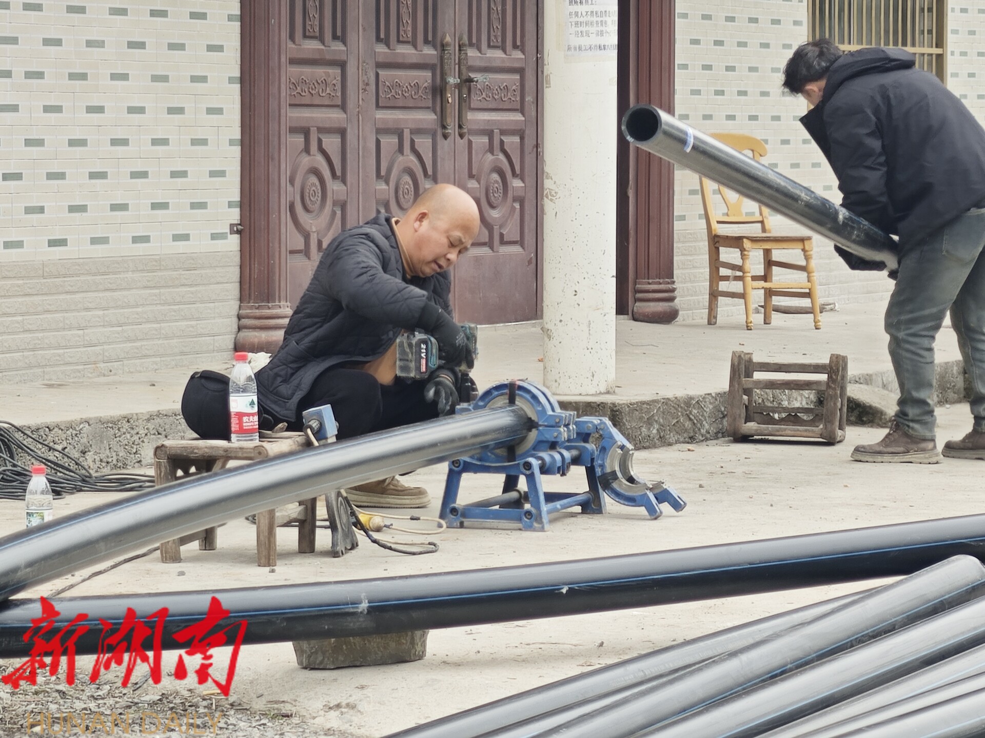 山间寒意未消,工地上却是一派热火朝天的景象,各乡镇“水利人”默契配合,有的负责管件焊接,有的紧盯水压变化,确保工程以最快速度投用。“山里群众吃水不容易,我们都是从‘看天喝水’那个阶段过来的,桥自弯的事就是我们自己的事。”一位正在调试阀门的支援队员抹了把额头的汗说道。