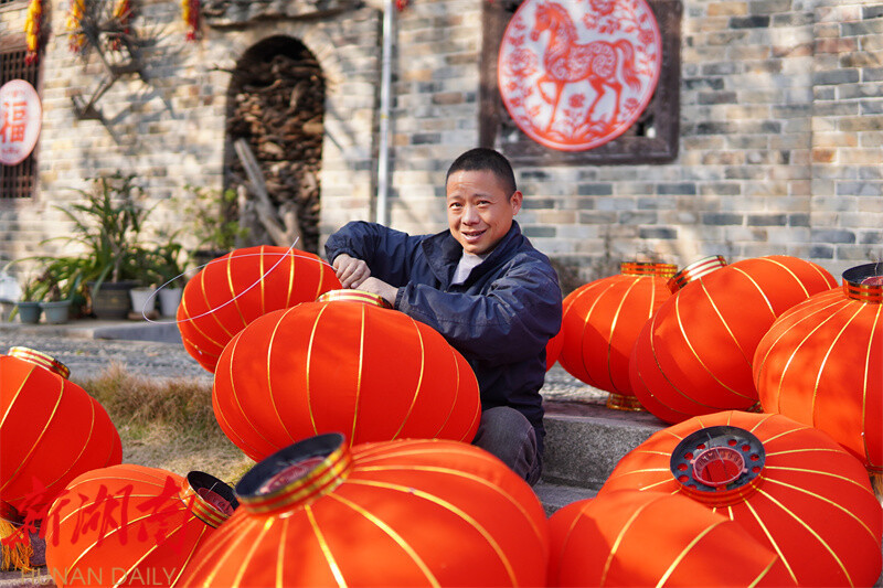 在张谷英村,走进当大门,飞檐之下挂满红灯笼,浓浓的年味扑面而来。古朴的老宅群里,袅袅炊烟早已升起,热气蒸腾间,大灶上的木甑不断冒出绵密蒸汽。提前精心浸泡的糯米被倒入甑中,蒸煮成晶莹剔透、香气四溢的糯米饭,清甜的米香在老宅间四处飘散。添柴的老人弓着脊背,不时往灶膛里续入干柴,火苗“噼啪”作响,为这一锅糯米注入了满满的烟火温情。