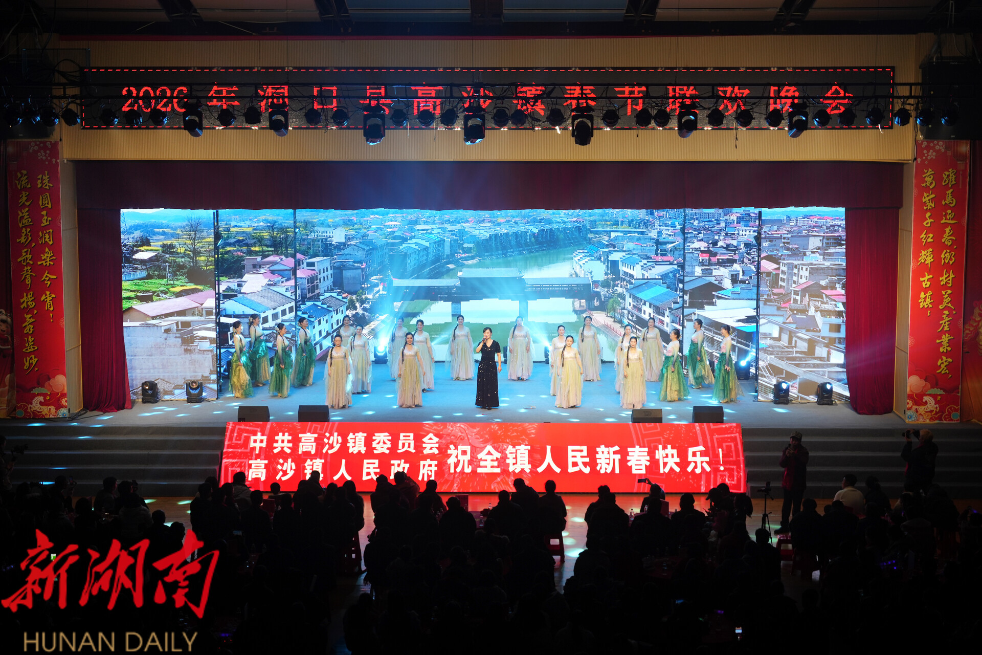 洞口融媒2月13日讯(记者:肖皓静 王哲 通讯员:付思佳) 蓼水汤汤传文脉,古镇欢歌庆新春。2月13日晚,2026年洞口县高沙镇春节联欢晚会在洞口三中体育馆温情启幕,晚会融合本土文化、乡愁情怀与时代风采,为全镇父老乡亲、海内外高沙儿女献上了一场精彩纷呈的新春文化盛宴。