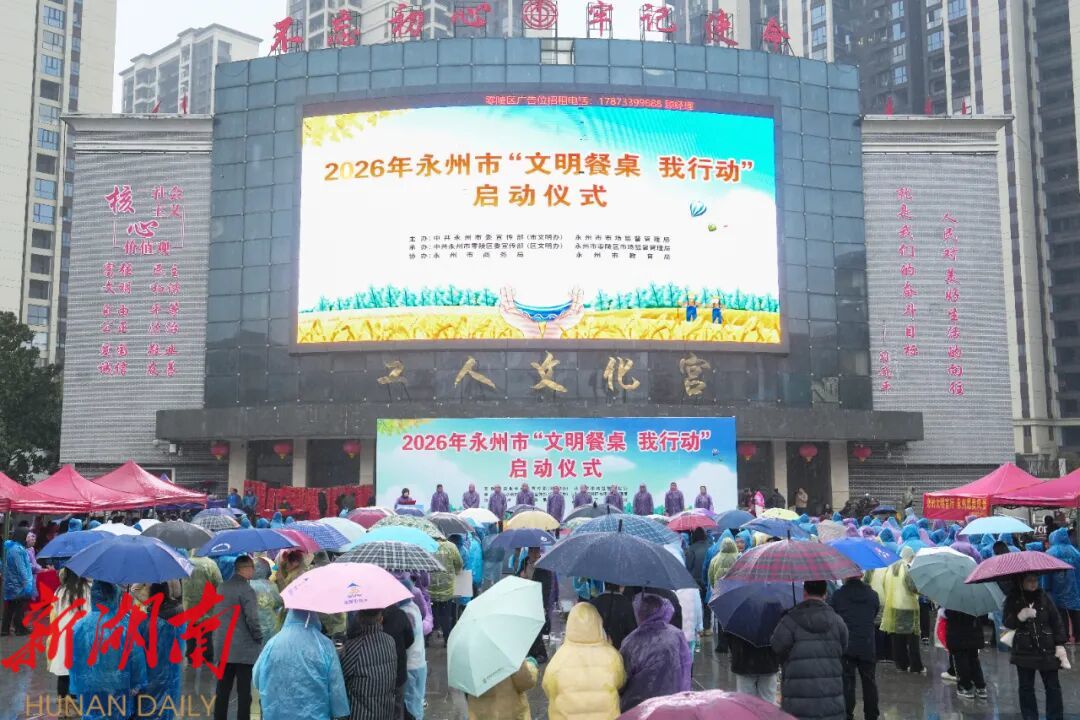 湖南日报·新湖南客户端2月14日讯(通讯员 郑志祥 潘爱民)2月13日上午,永州市“文明餐桌 我行动”启动仪式在零陵区安康广场举行。活动旨在深入贯彻勤俭节约优良传统,以餐桌“小切口”推动城市文明“大提升”,动员全市上下从一餐一饭做起,共同涵养节约光荣、浪费可耻的社会风尚。