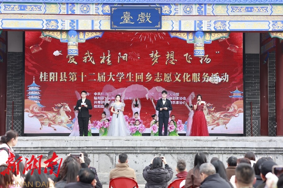 新桂阳2月14日讯(记者 陈勇 欧阳宇轩)2月13日,“爱我桂阳·梦想飞扬”2026年桂阳县大学生春晚在文化园古戏台精彩上演,为广大市民呈现了一场融合青春风采、地域文化与时代新意的视听盛宴。