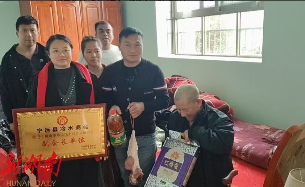 湖南日报·新湖南客户端2月14日讯(通讯员 杨刘杰) 春节将至,年味渐浓。2月12日,宁远县冷水镇毛坪头村迎来了一位特殊的“归客”——从本村走出的青年企业家、冷水商会副会长张艳峰。他以企业与商会双重名义,为村里老人和困难家庭送上猪肉、食用油、大米等暖心年货,让湘南乡村提前洋溢着融融暖意。
