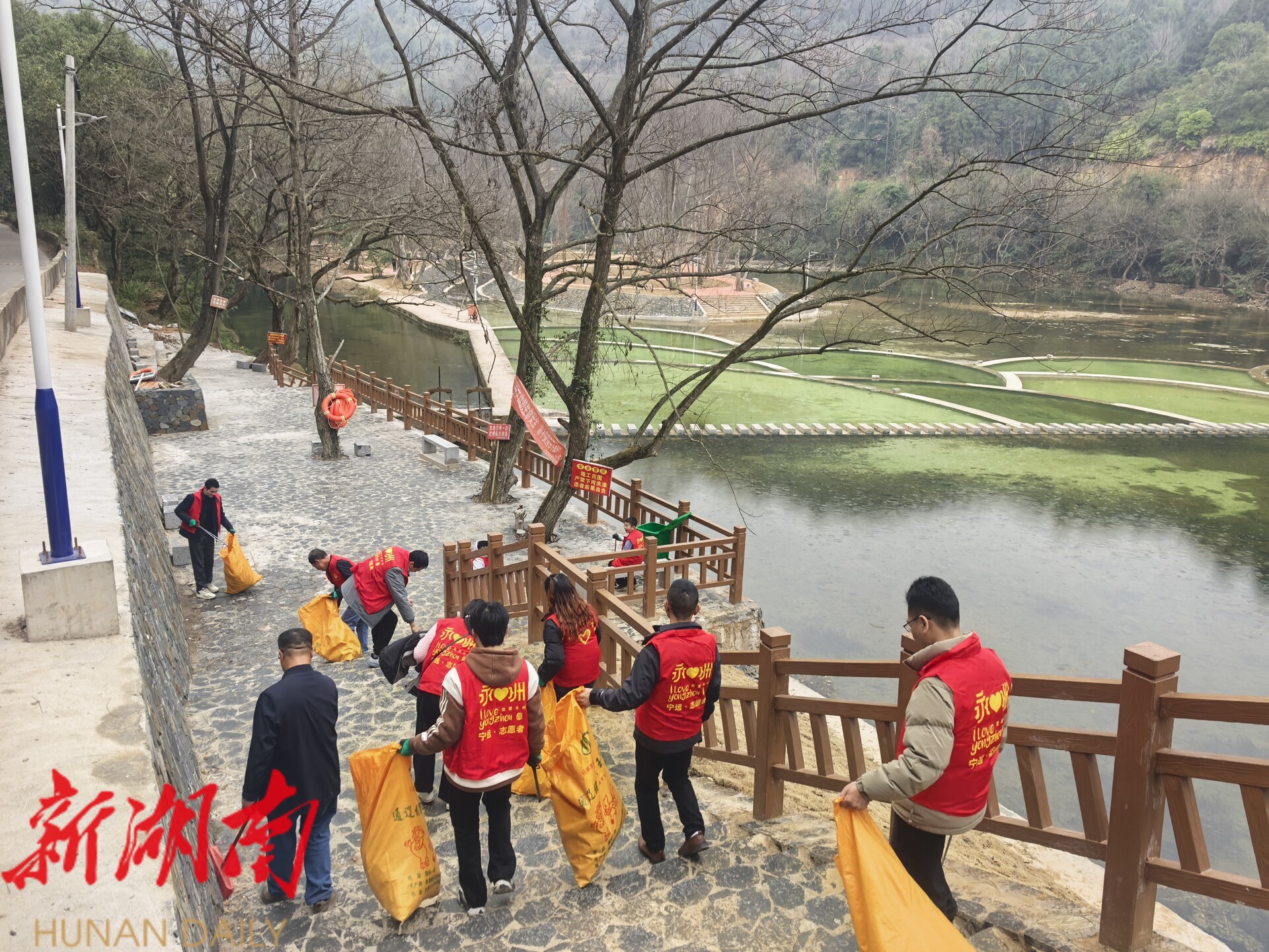 湖南日报·新湖南客户端2月14日讯(通讯员 蒋艳娟 ) 走进宁远县文庙街道蛟龙塘村,村道干净整洁,蜿蜒处不见垃圾积存,拐角再无杂草挡眼。村口“党建引领、乡村振兴”的红色标语旁,十余名身着红马甲的党员干部正俯身拾捡散落的白色垃圾,身后是焕然一新的宁凤线蛟龙塘路段——这是蛟龙塘村“乡村靓化工程二阶段”的攻坚现场,也是该村以党建引领基层治理的生动注脚。