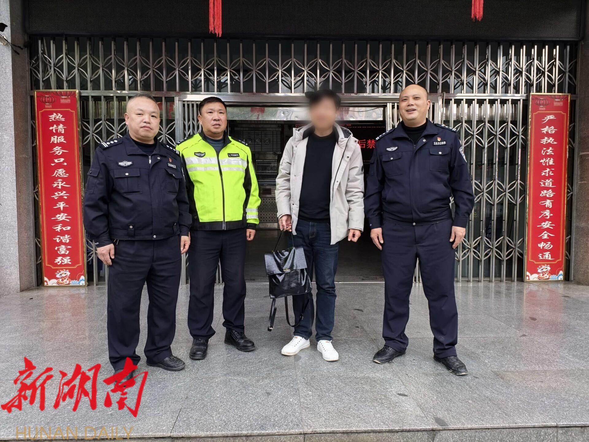 因廖女士不便到场,其丈夫来到永兴县交警大队代领。经现场核对,现金及物品原封不动、分毫未少。