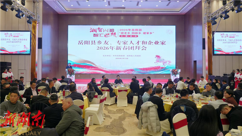 湖南日报·新湖南客户端2月14日讯(通讯员 罗爽 张帆) 2月13日,岳阳县举行2026年新春团拜会,360余名乡友、专家人才、企业家代表如约相聚在巴陵故土,共迎新春、畅叙乡情,共谋发展。县委书记肖湘晖出席并致辞。县委副书记、县长吴光文主持并通报全县经济社会发展情况。