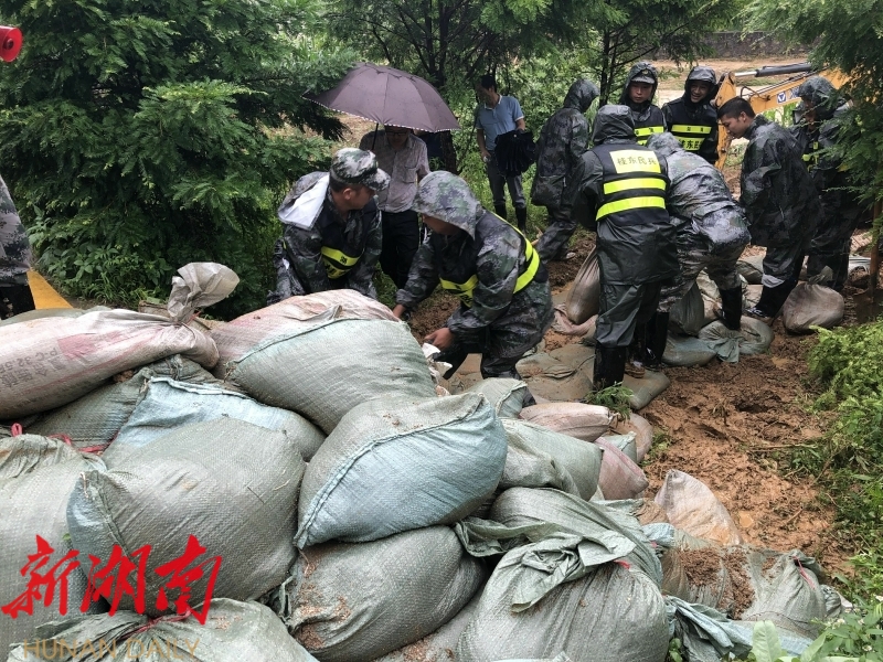桂东县融媒体中心6月3日讯(记者 郭慧稳 黄莎娜 钟卓文)6月1日,特大暴雨突袭我县,导致沤江水位迅速猛涨,沤江镇增口村段的河堤突然被冲垮,缺口长达80米,抢险救援刻不容缓。县民兵应急连闻讯紧急出动,把“险区”当战场,连续奋战18个小时,抢修好河堤,保护人民群众生命财产安全。