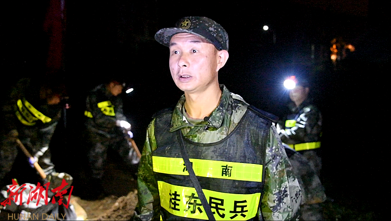 县民兵连连长周静南带领大家喊着整齐的口号,不断加快沙包在手上的传递速度,争分夺秒地抢修河堤,与洪水和雨情抢速度。周静南是一名有着20年党龄的退伍老兵,家住沤江镇草塘村。受暴雨影响,家中房屋进水,土地被淹,但周静南没有顾得上自己的“小家”,始终奋战在抢险一线。
