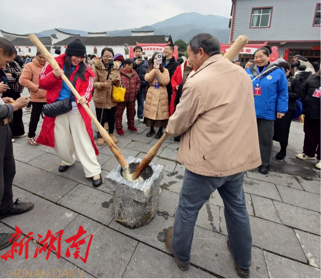 1月25日,周家大院景区“观冠军赛事,品零陵年味”主题活动热闹启幕。书法名家现场挥毫,为游客书写春联、送上祝福;传统“杀年猪”、共享“杀猪饭”让八方来客沉浸式体验湘南年俗。非遗市集上,竹编、剪纸、打糍粑等老手艺吸引众多游客亲手尝试,乡土气息扑面而来。午间,“柳子家宴”伴着特色文艺表演温馨开席,团圆氛围浓厚;午后田园拾趣,夜晚篝火村晚,游人徜徉其间,尽享乡村新春的淳朴乐趣。