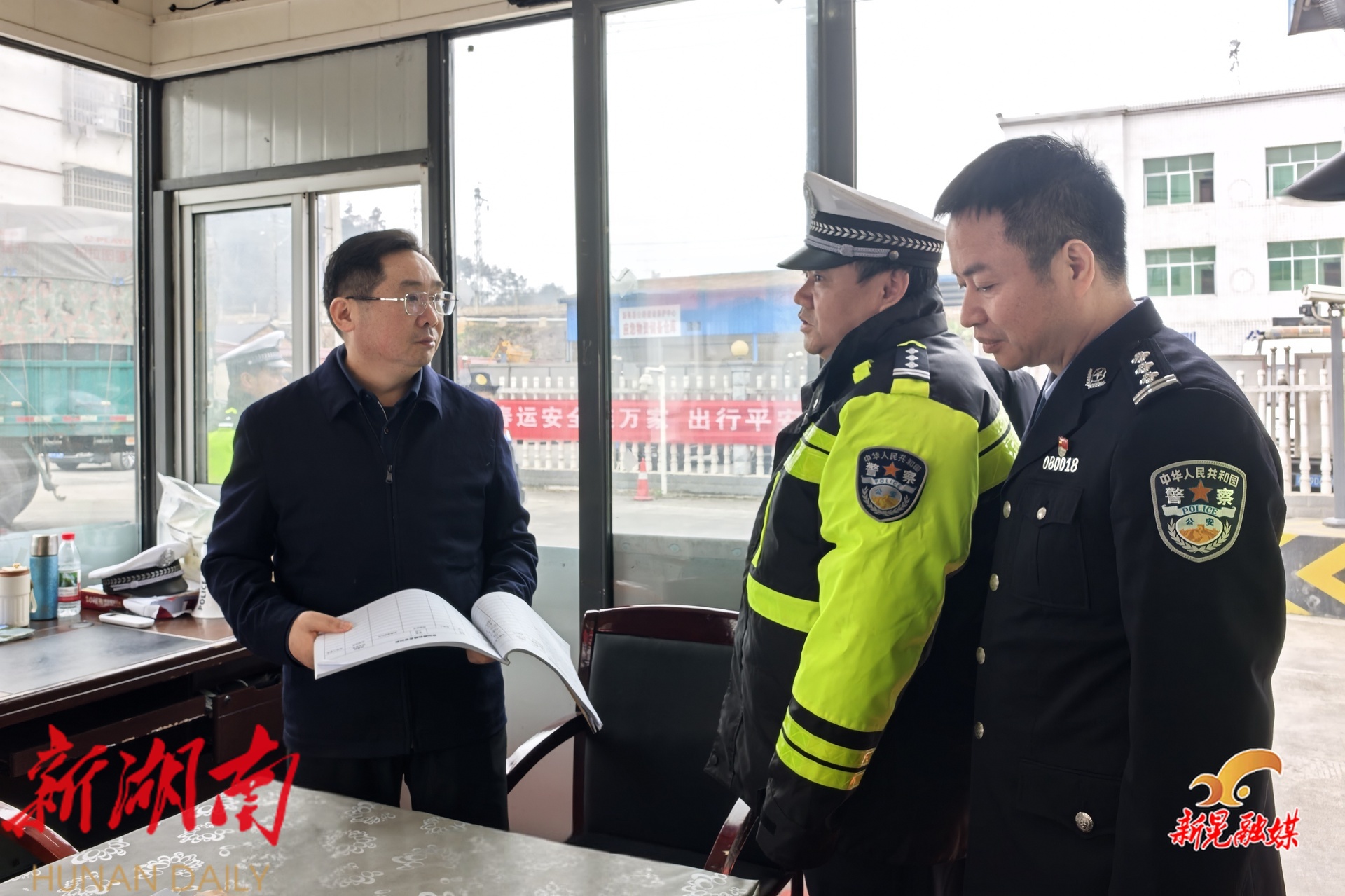 在春运交通安全检查服务站,符家盛听取了春运道路交通安全、车辆管控、值班值守等工作情况汇报。他强调,要严格落实安全管控措施,加大重点车辆安全检查力度,严厉查处各类交通违法行为,全力维护道路通行秩序。