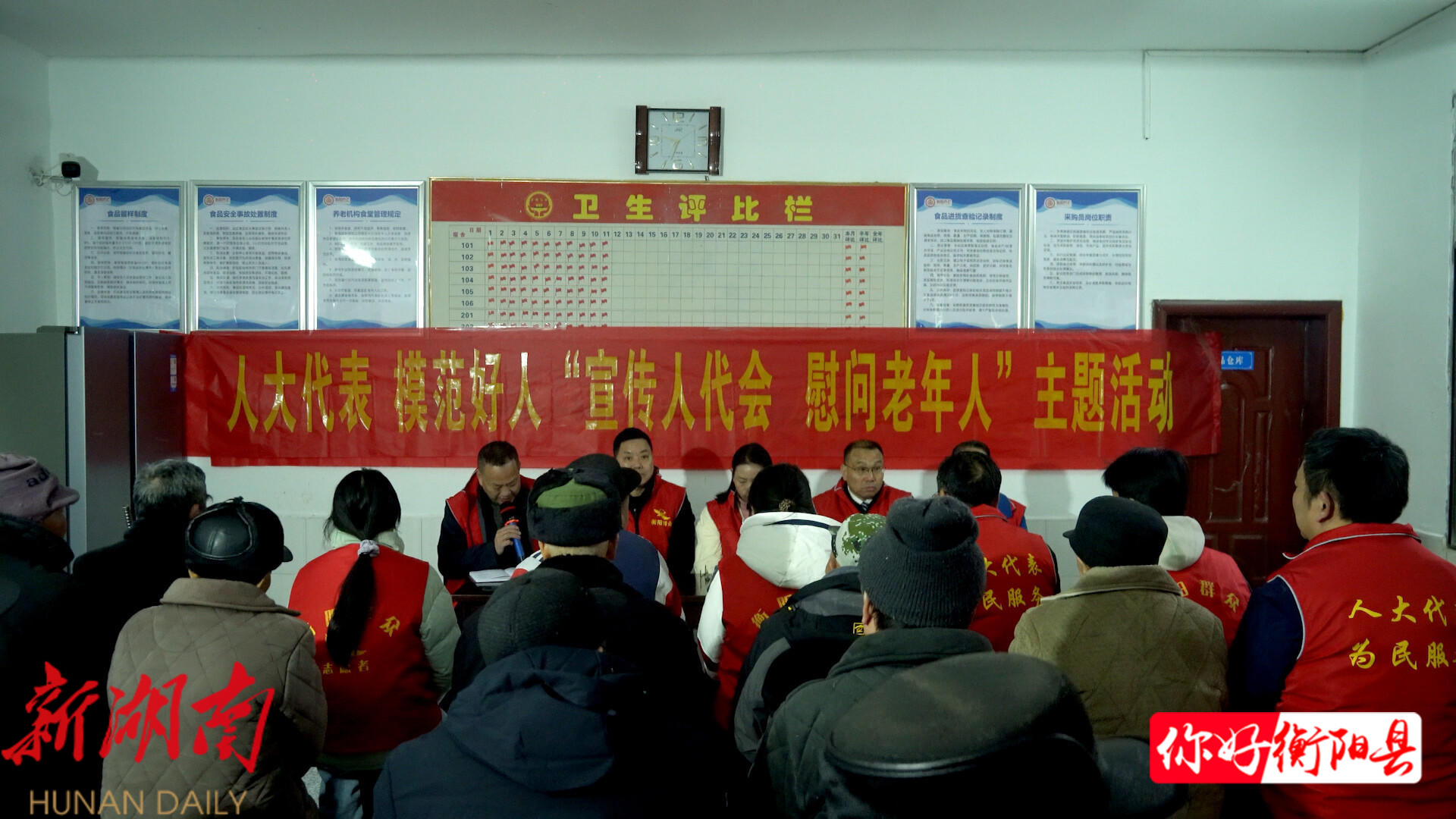 衡阳县融媒2月14日讯(记者:丁源) 2月10日,驻衡阳县市人大代表第二小组联合部分省市县人大代表、模范好人志愿者,走进渣江镇敬老院开展“宣讲政策传党音 春节慰问暖人心”主题活动,将省市人大会议精神与新春祝福一同送到孤寡老人身边,让敬老院里暖意融融、年味十足。