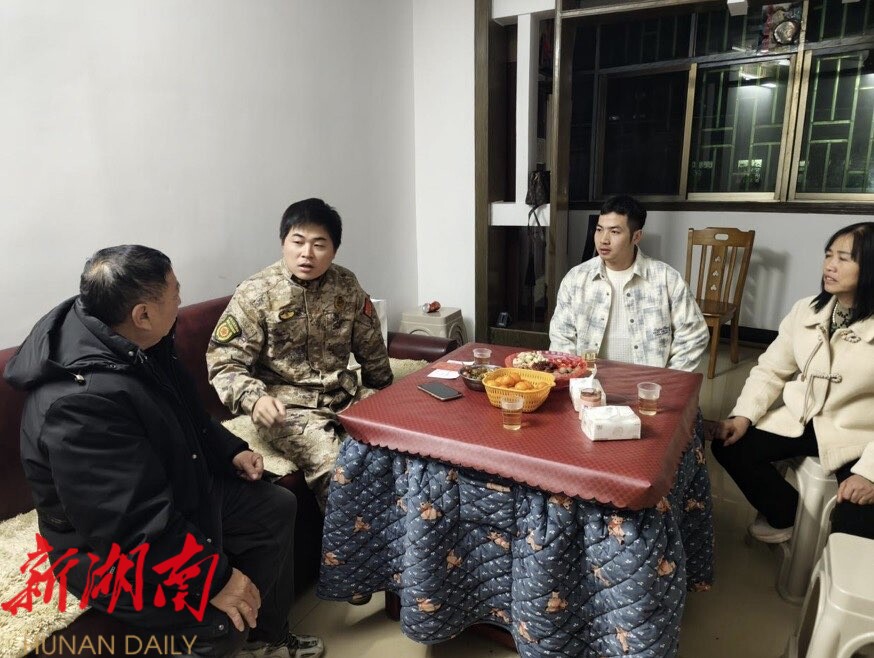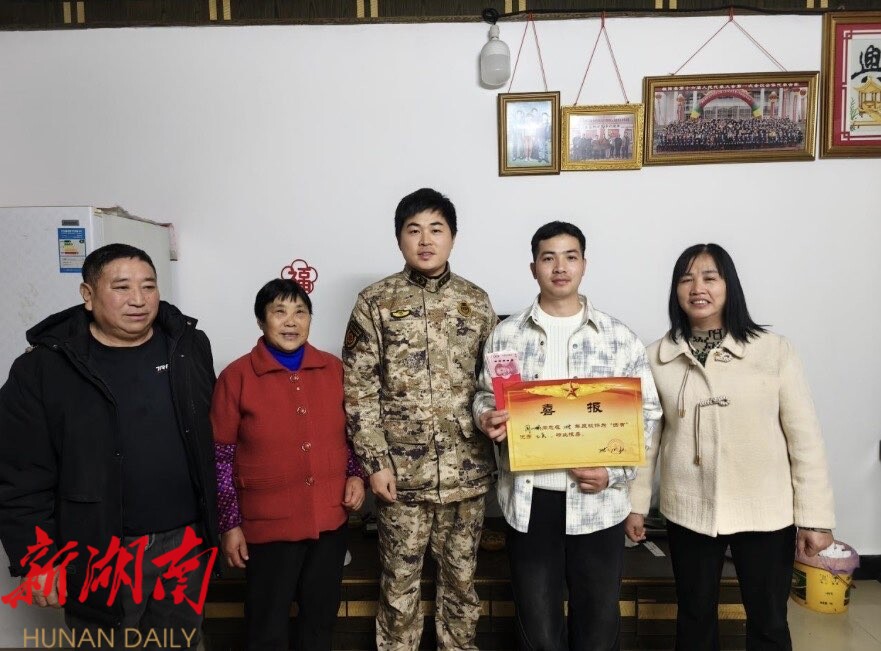 新桂阳2月14日讯(通 讯员 彭昭军 夏峰 ) 近日,在海警某部队服役的现役军人周小鹏返乡探 亲首日,白水 瑶族乡 人武部 联合 乡 退役军人服务站 组 成 的“报喜团” , 当晚 便携带“ 四有”优秀士兵喜报及慰问 金 , 来到位于 桂阳大市场 的 周小鹏家中,第一时间将这份军旅荣誉送到其家人手中,切实彰显对现役军人的尊崇与关怀,让军人荣誉落地生根、暖入人心。