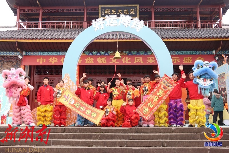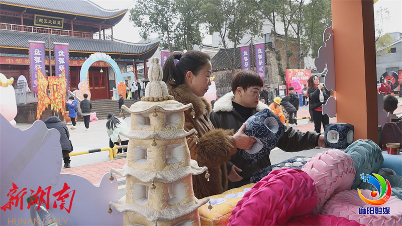 麻阳融媒2月14日讯(记者 满妍玉 实习生 舒梓怡)2月13日,麻阳漫水社区盘瓠大王殿前人潮涌动,以“橙龙跃马·盘瓠祈春”为主题的首届橙龙非遗潮玩新春庙会在此拉开帷幕。活动深度融合盘瓠文化与苗族非遗,通过“一河两岸三岛”的空间布局,打造集祈福、非遗体验、文创消费于一体的新春文化活动,为当地民众带来了一场沉浸式的文旅盛宴。