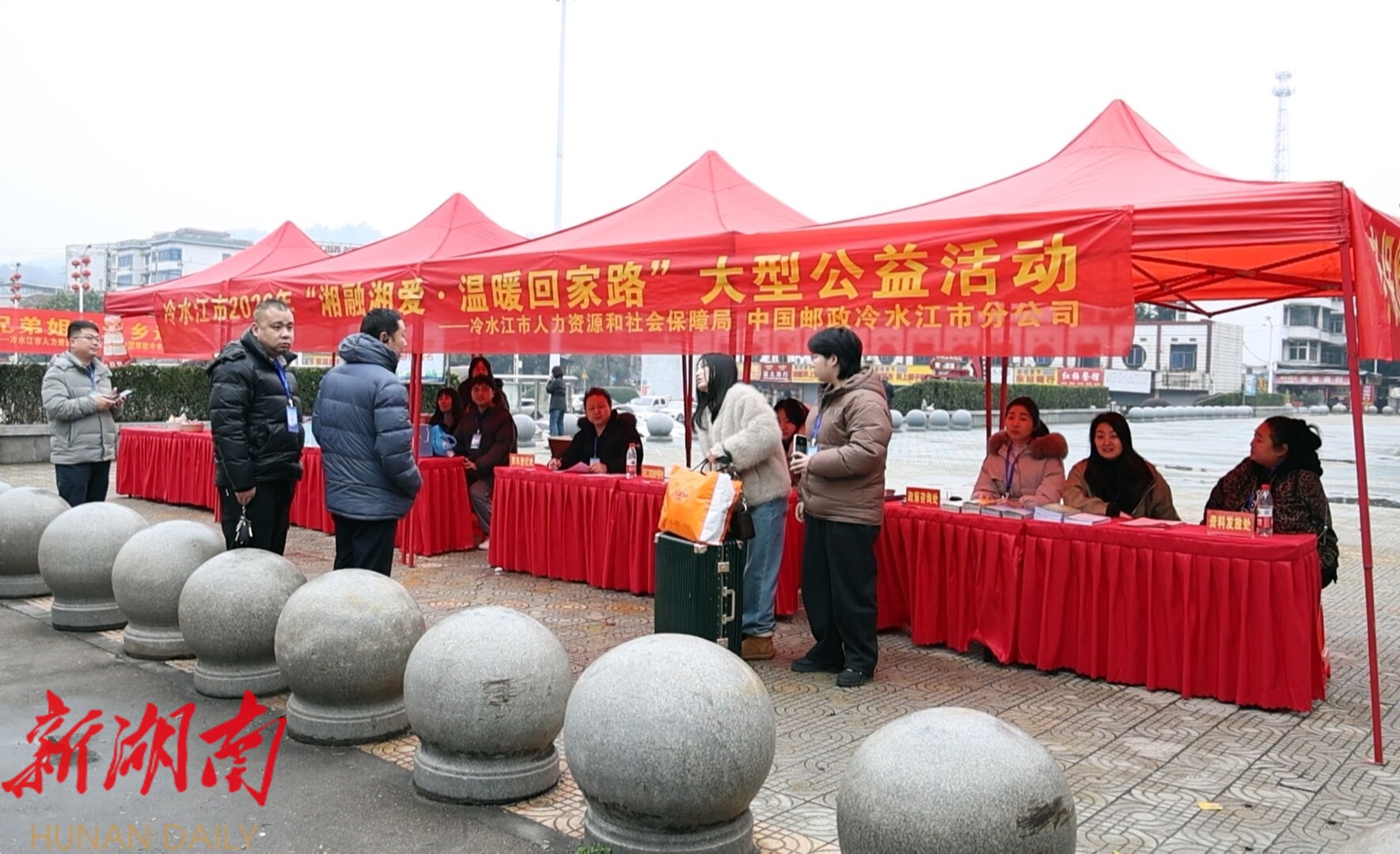 湖南日报·新湖南客户端2月14日讯(通讯员 潘雁平 段姝)春节临近,在外打拼一年的老乡们陆续踏上了回家路。从12日开始,冷水江东站和金竹汽车站里多了一群穿红马甲的“自家人”——由冷水江市人社局和邮政分公司联合发起的“湘融湘爱·温暖回家路”活动全面启动。