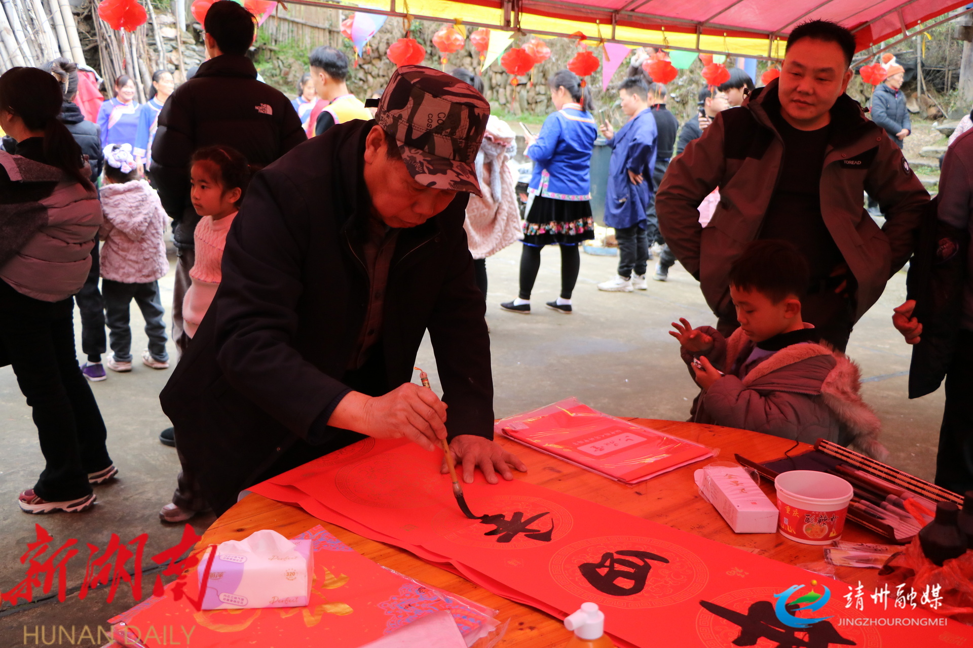 书法爱好者写春联(夏源懋 摄)