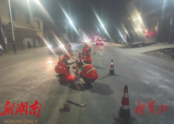 新蓝山客户端2月15日讯 (通讯员 马朝辉)2月14日晚,蓝山县公路建设养护中心抢抓夜间车流少的时机,组织养护人员在G537竹市集镇路段连夜安装、清洗、更换示警桩,消除夜间行车安全隐患。