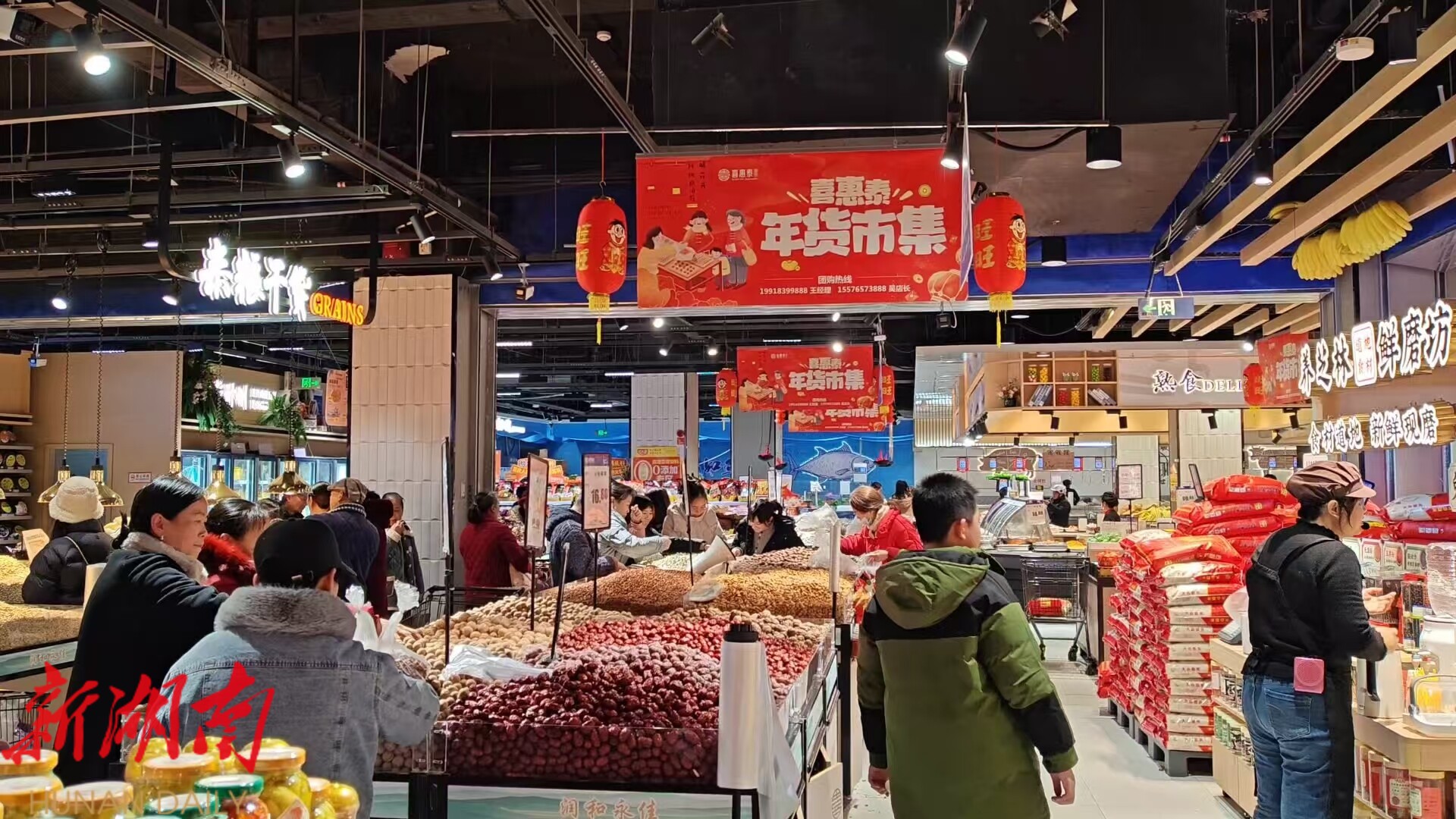 2月15日,在县城喜惠泰超市,促销标语醒目亮眼,货架上米面油、肉蛋奶、蔬菜水果等民生商品琳琅满目、摆放整齐,各类年货商品一应俱全,前来选购的市民络绎不绝,现场购销两旺。为应对春节消费高峰,商超提前加大备货力度,拓宽供货渠道,全力满足市民节日采购需求。