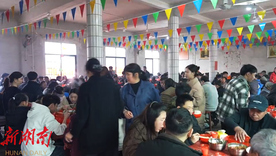 湖南日报·新湖南客户端2月16日讯(通讯员 郭志义)2月13日,年味渐浓。在永兴县高亭司镇大杨村,当地村民接龙灯,办“村晚”,热热闹闹一起吃团圆饭,祈愿马年行大运、生活更美好。