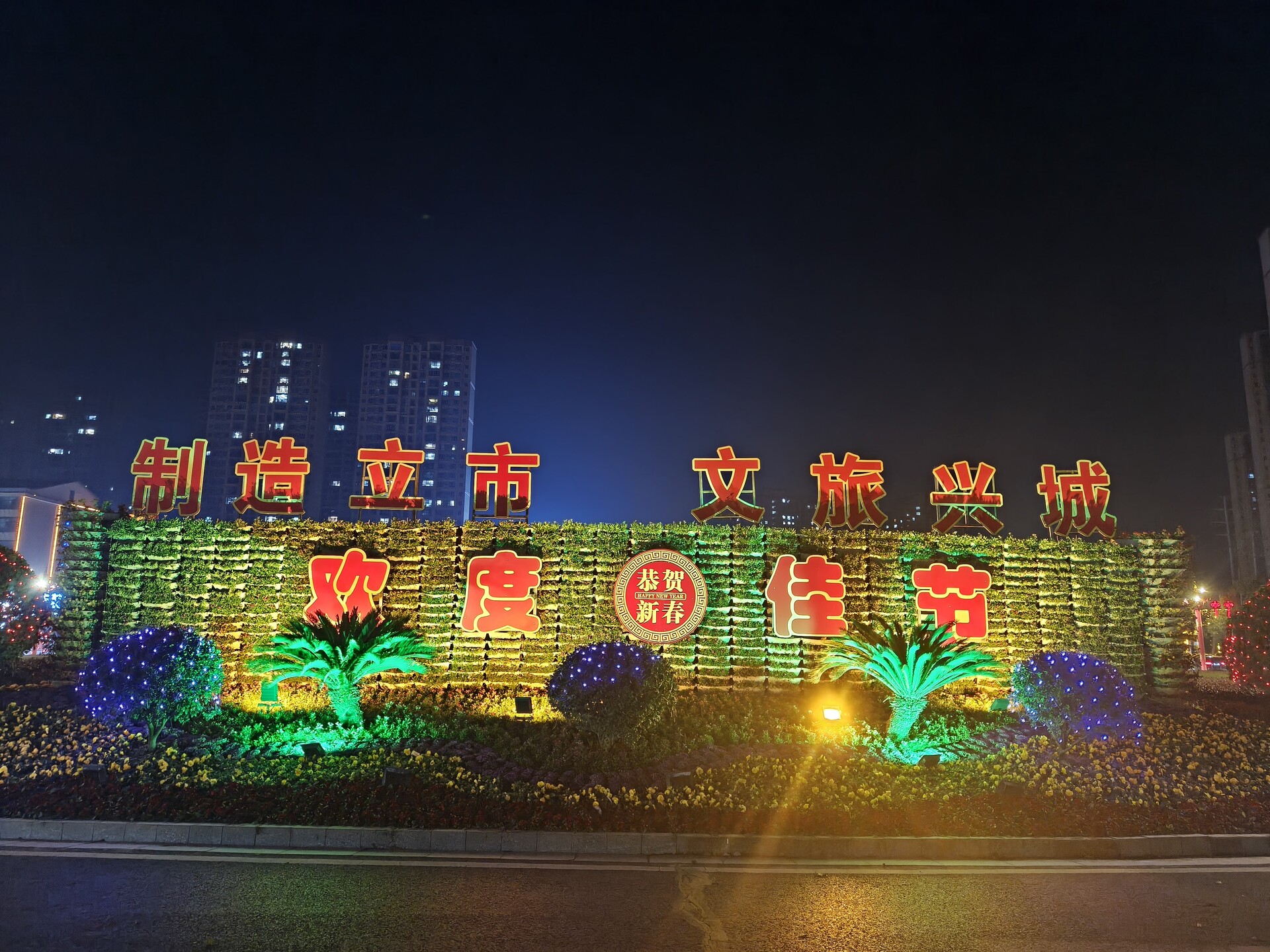 城市入口处,“制造立市 文旅兴城”的醒目标语与“欢度佳节”的新春祝福交相辉映,灯光映照下,既彰显着衡东发展的坚定方向,也传递着浓浓的新春暖意。商圈周边,亮化景观与商铺霓虹融为一体,流光溢彩中,市民们结伴而行,赏灯观景、置办年货,欢声笑语此起彼伏,勾勒出最动人的市井烟火气。