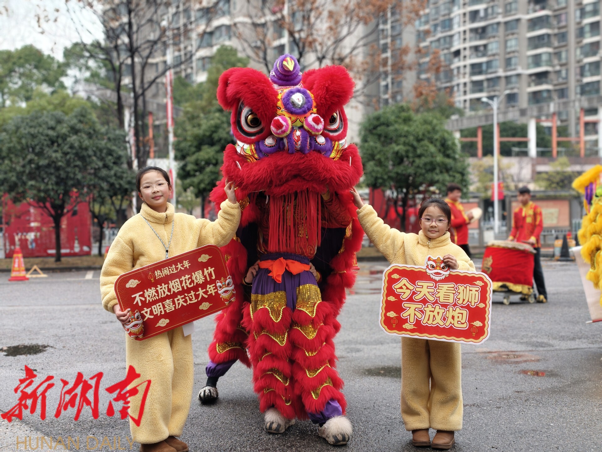 湖南日报·新湖南客户端2月16日讯(通讯员 苏蔚)除夕辞旧迎新日,瑞狮献瑞福临门。在万家团圆、年味浓郁的除夕当天,开福区芙蓉北路街道江滨社区打破传统宣传模式,将民俗舞狮表演与禁燃禁放宣传巧妙融合,举办“瑞狮闹春辞旧岁, 禁燃护航迎新春”主题活动,用热闹喜庆的传统文化聚人气、暖民心,以接地气、有温度的宣传引导居民文明过节,让平安成为新春最亮眼的底色。