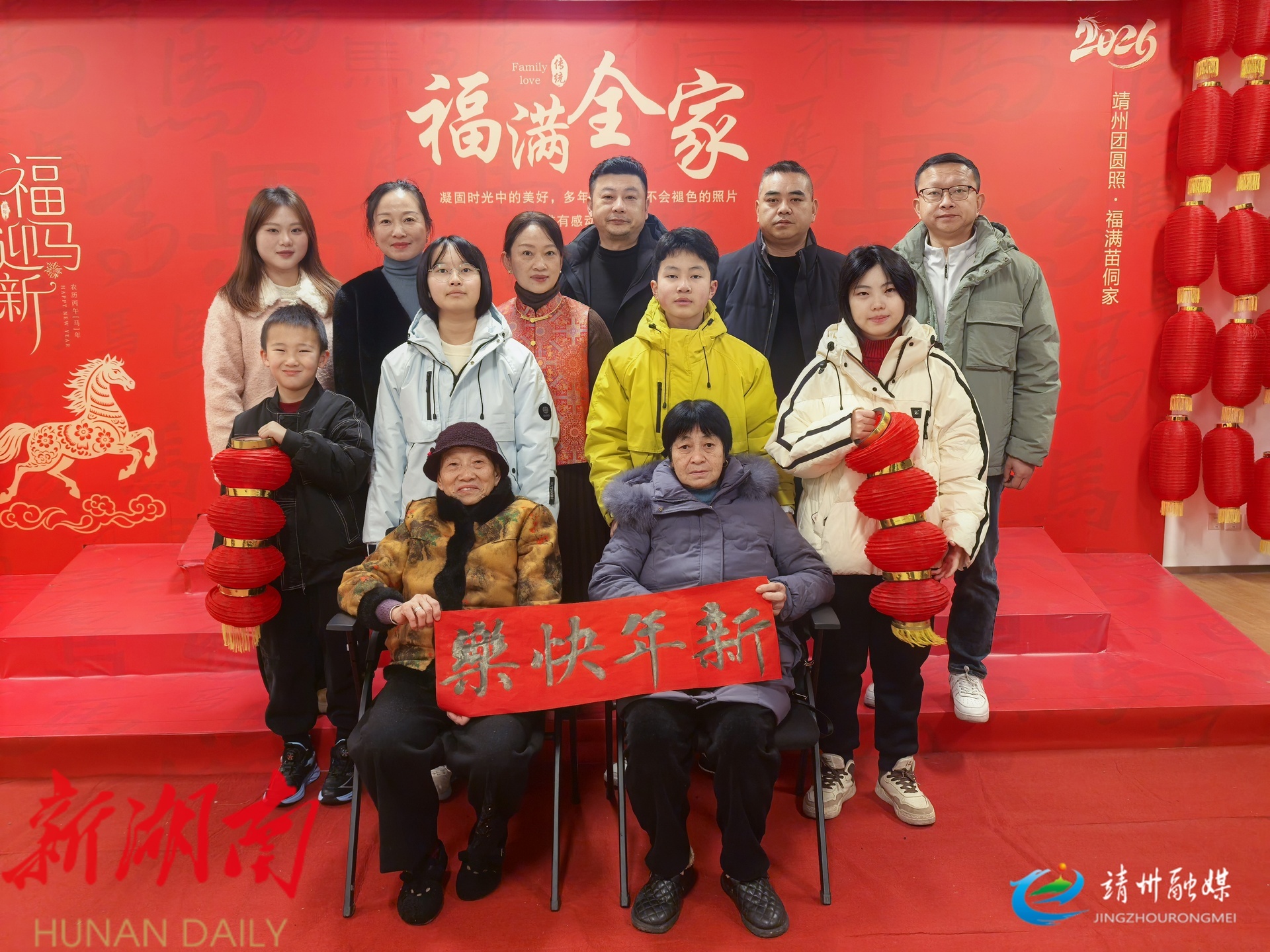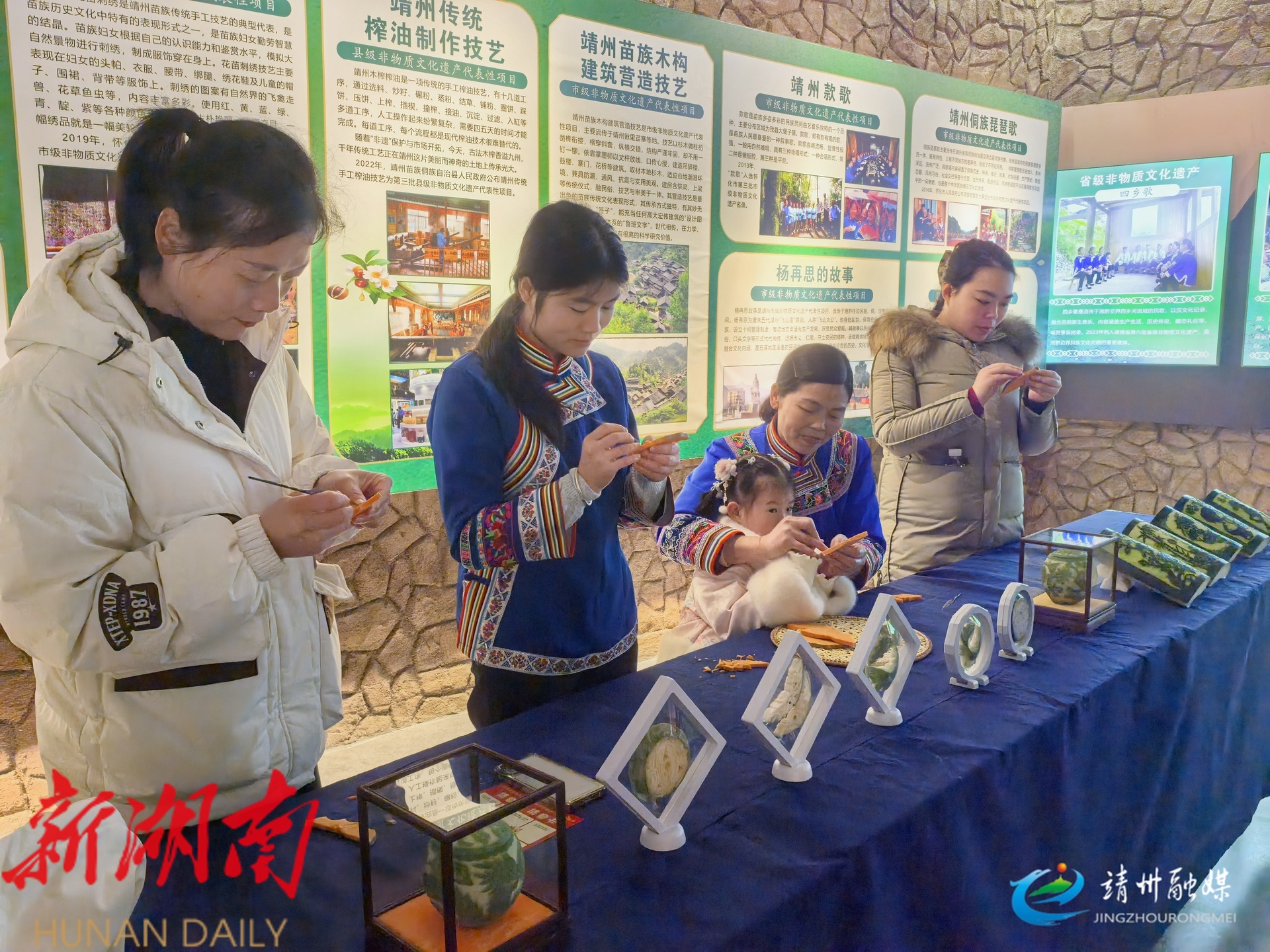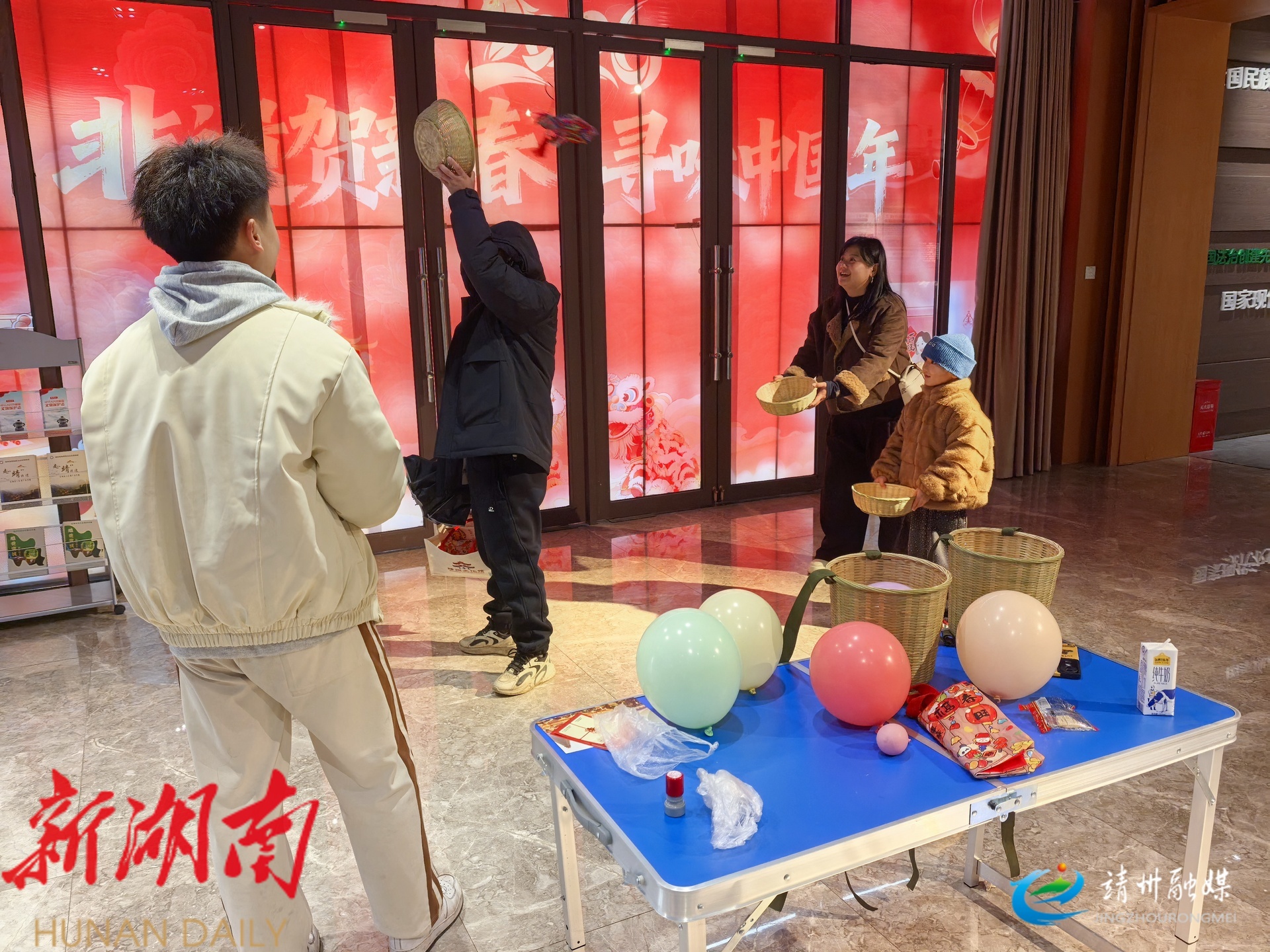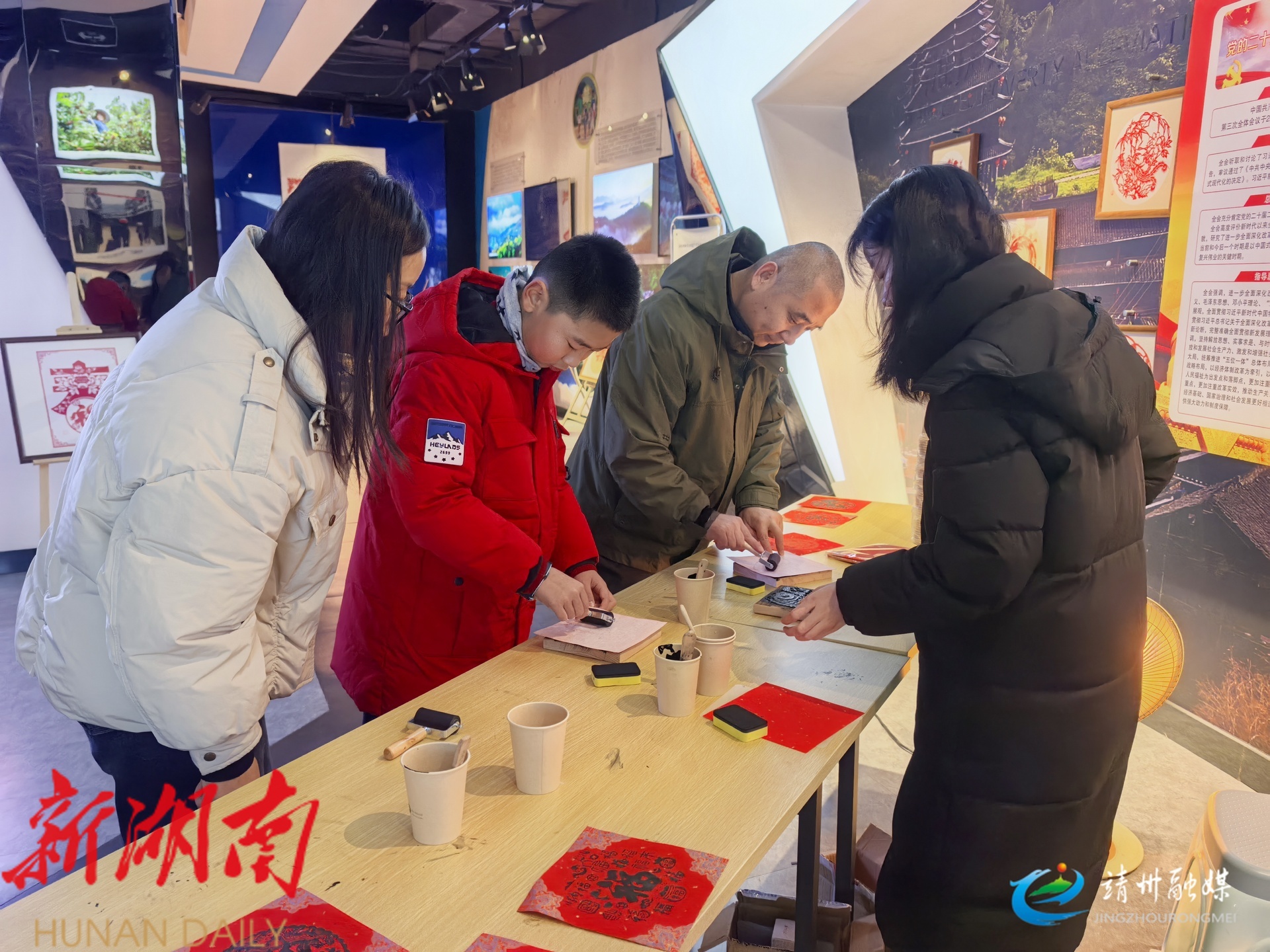 “带着家人拍全家福、体验非遗,既有靖州特色又年味十足,一家人过得十分开心。”市民周银艳笑呵呵地说。