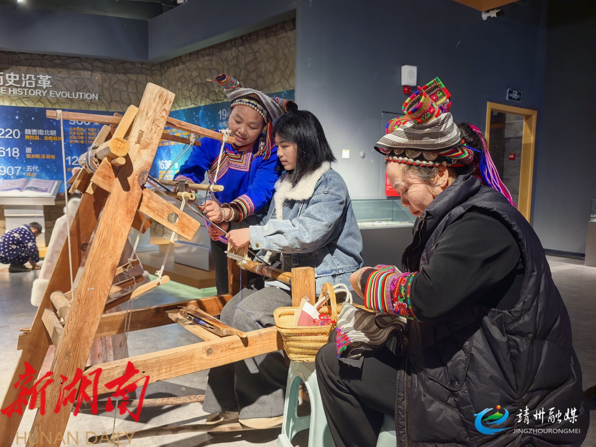 市民在博物馆体验苗族织锦技艺(钦苏芬 摄)
