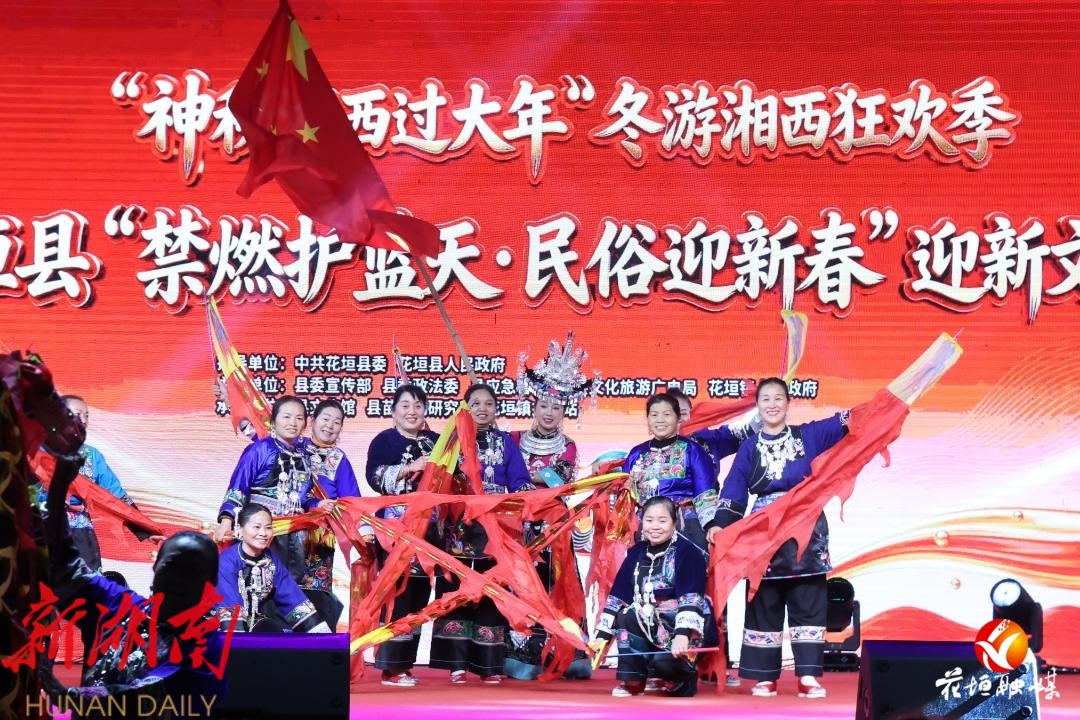 这场“神秘湘西过大年”冬游湘西狂欢季暨花垣县“禁燃护蓝天·民俗迎新春”迎新文化活动由县委宣传部、县应急管理局、县文化旅游广电局、花垣镇人民政府等单位联合主办。活动通过群众喜闻乐见的文艺形式,让绿色过节、安全过节的理念深入人心,同时传承弘扬民族文化,丰富了群众的节日精神文化生活。