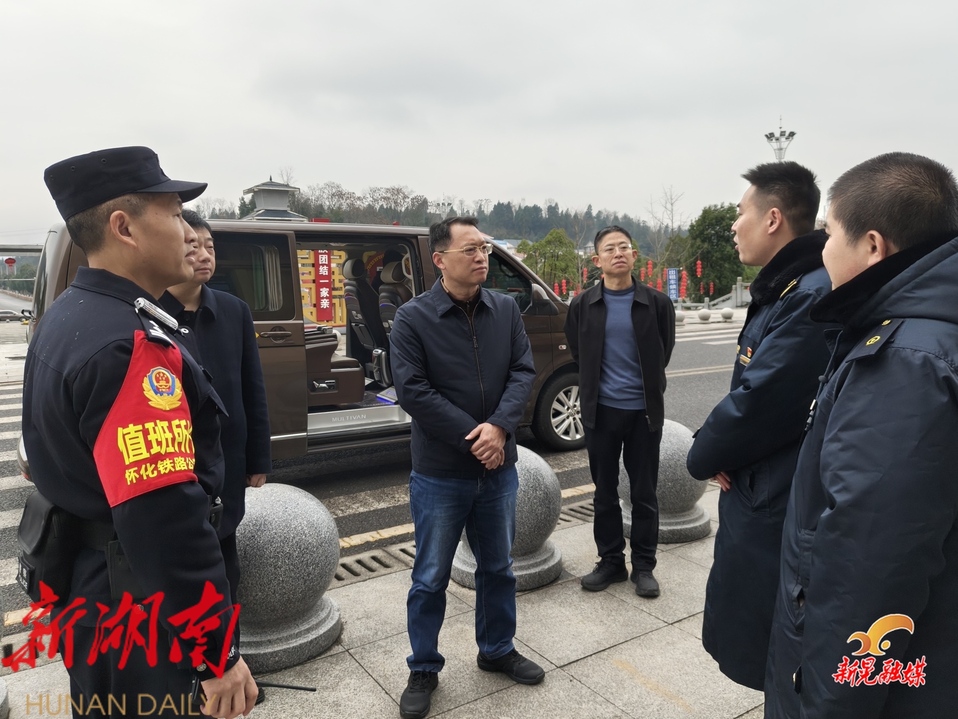 在高铁新晃西站、高铁新晃西站派出所,杨鹏与高铁站工作人员和派出所民警亲切交流,仔细询问春运期间客流变化、安保措施落实及便民服务情况。他对大家过去一年为保障高铁运行秩序、维护社会治安稳定所付出的努力表示感谢,并叮嘱值班人员要用心用情做好服务保障,为往来旅客打造安全、有序、舒心的出行环境。