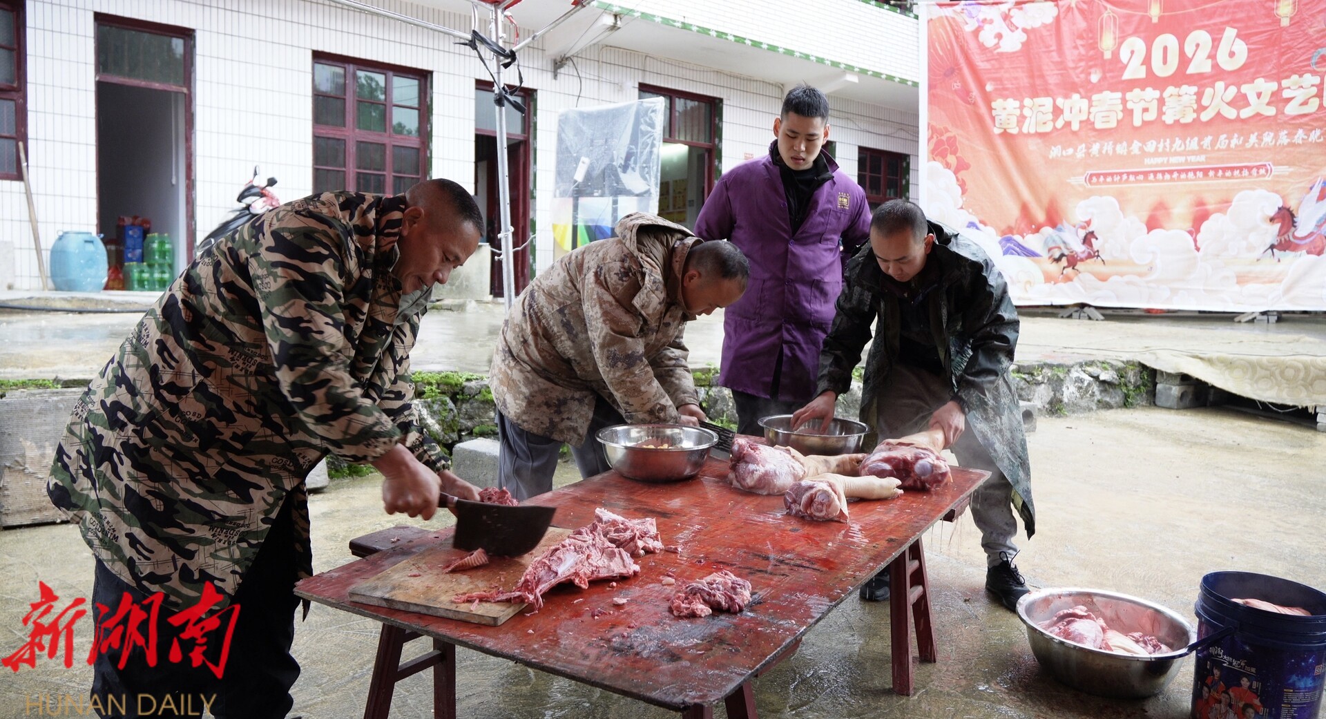 洞口融媒2月18日讯(记者:胡海鹏) 辞旧迎新年味浓,乡村欢聚乐融融。为喜迎新春佳节,营造喜庆祥和、团结和睦的节日氛围,2月16日,黄桥镇金田村精心组织开展新春民俗系列活动,杀猪宰羊、品尝杀猪菜、包饺子、篝火晚会、文艺表演等丰富多彩的项目轮番上演,村民们欢聚一堂,在热闹喜庆的氛围中感受浓浓年味,共迎美好新年。