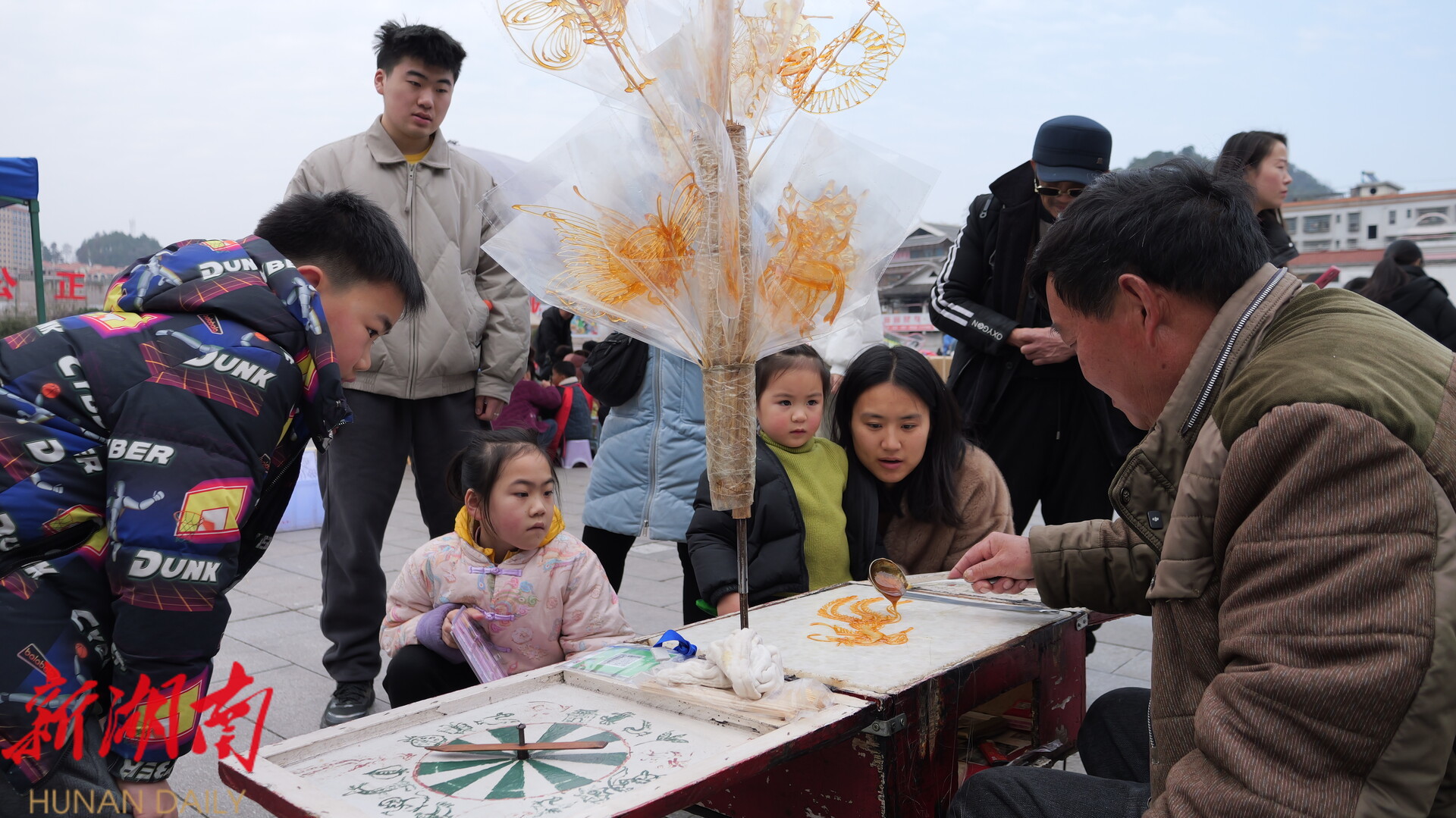 春节期间,不少在外务工、求学的桑植儿女返乡过年,很多人会找到陈文星的摊位,买上一个糖画,重温童年味道。“这次放假回家,突然看见糖画,一下子就想起小时候跟同学一起围着买糖画的样子,今天专门买个糖画,回忆一下童年的感觉。”返乡市民赵云说道。