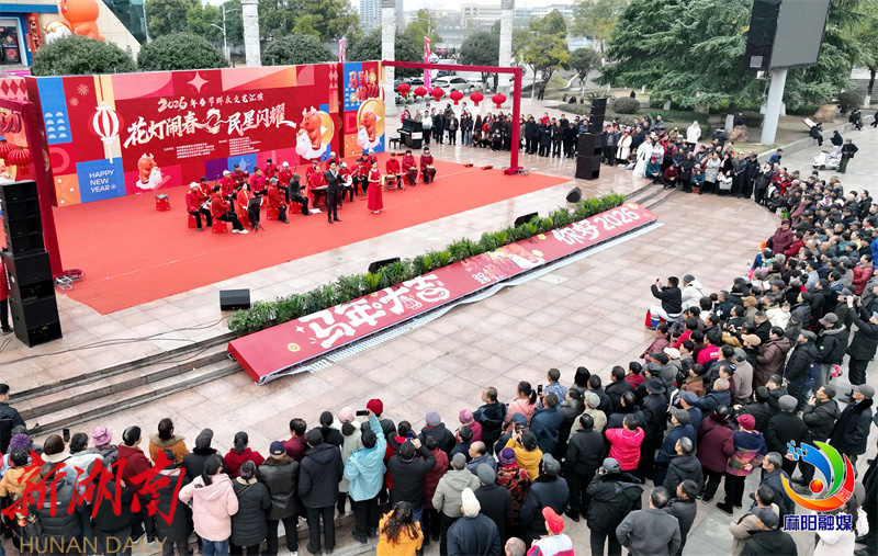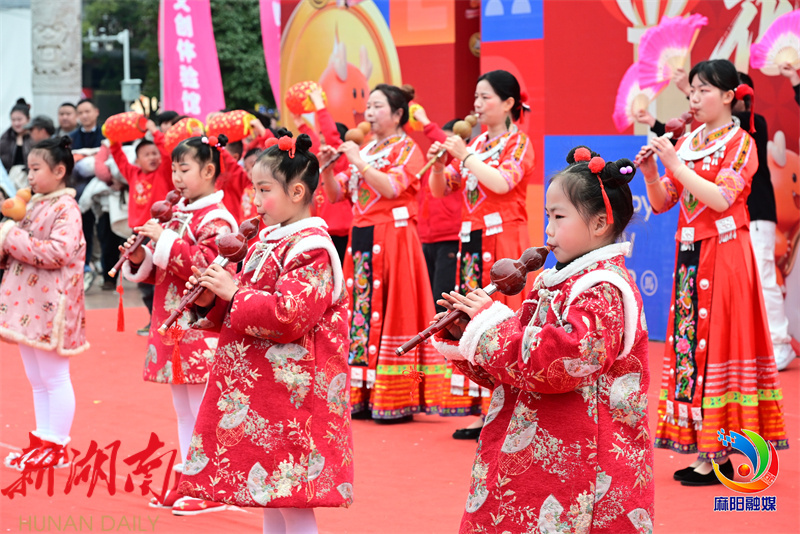 麻阳融媒2月18日讯(作者 张杰 张瑜 范莉) 金马贺岁,弦歌不辍。 2月18日正月初二,在麻阳苗族自治县的锦江广场上,没有流量明星,也没有天价门票,但这里的热闹劲儿却一点也不输给任何大型演唱会。 当天,麻阳“花灯闹春 民星闪耀”春节群众文化活动迎来了“器乐悠扬·声乐风采”专场。在这个属于老百姓自己的舞台上,优雅的钢琴与乡韵十足的葫芦丝奇妙交织,专业的返乡大学生与稚嫩的孩童并肩而立,共同奏响了新春的第一乐章。