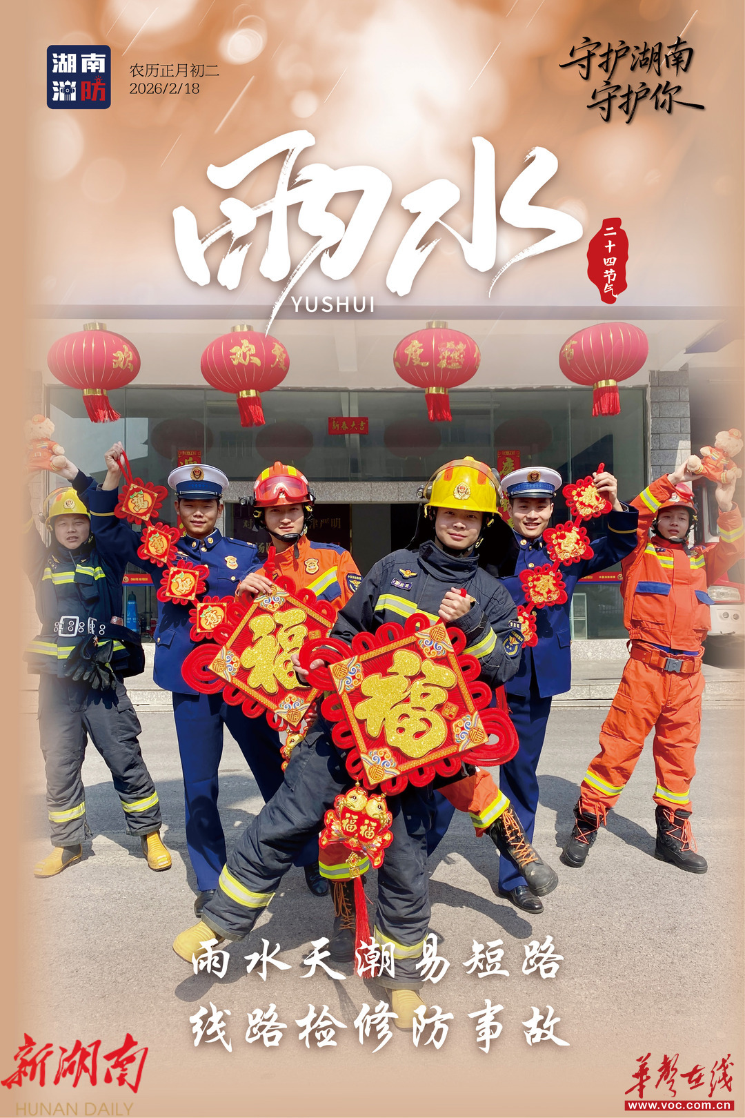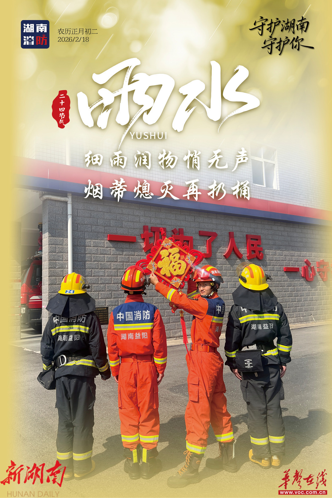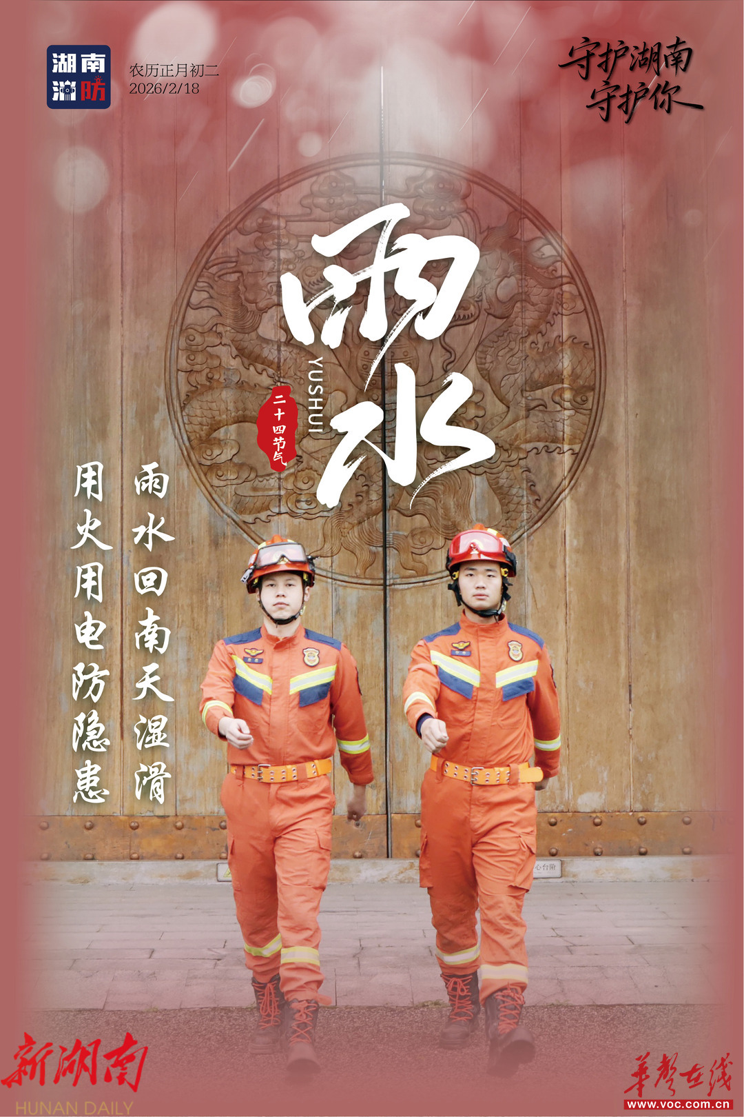 今日雨水,随着气温回暖、湿度攀升,“回南天”特有的潮湿环境容易引起电气火灾。湖南消防提醒:雨水时节,及时检查家中线路,保持电器干燥,谨防潮湿天气“走火”,让平安与春意一同生长。