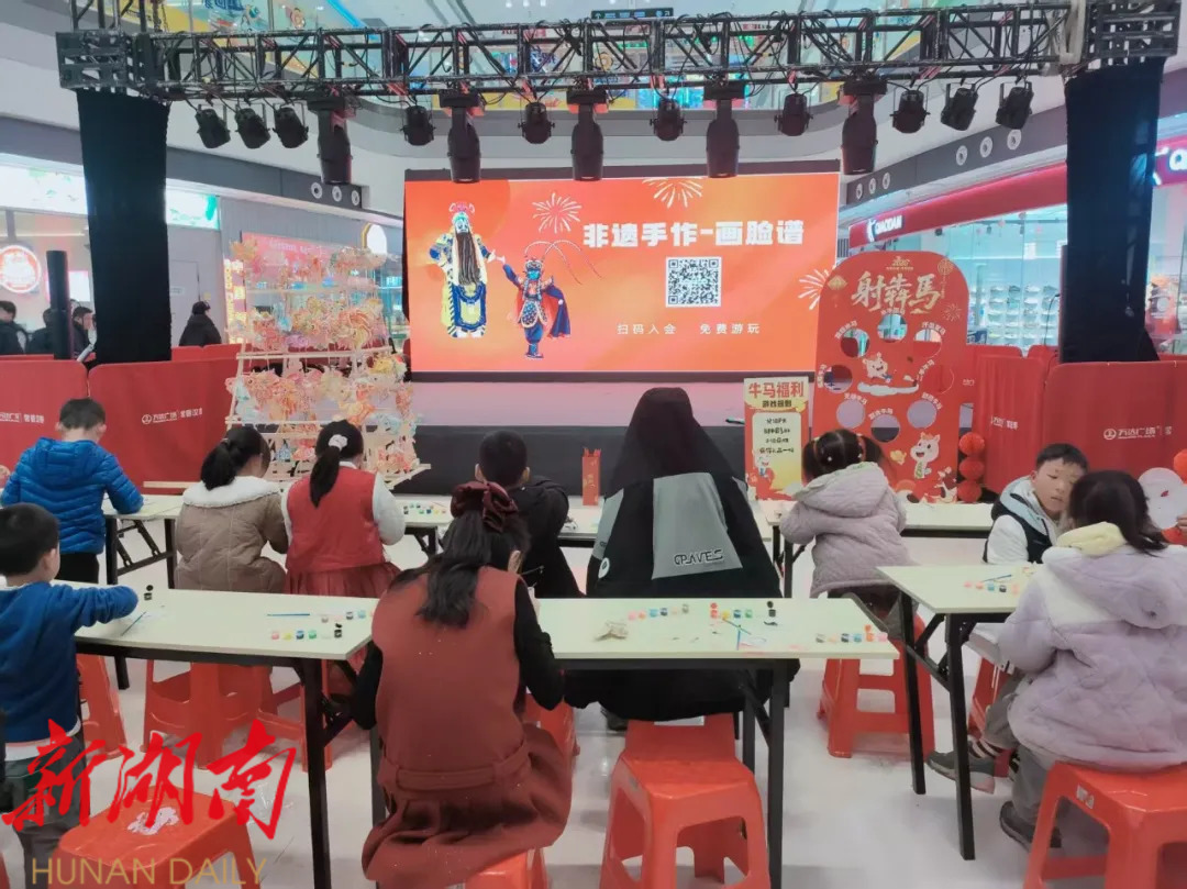 春节期间,万达广场推出的“彩绘脸谱”活动,吸引孩子们前来打卡。参与者可在京剧脸谱模板上自由创作,将传统纹样与现代涂鸦结合,让孩子们在动手实践中感受戏曲文化魅力。