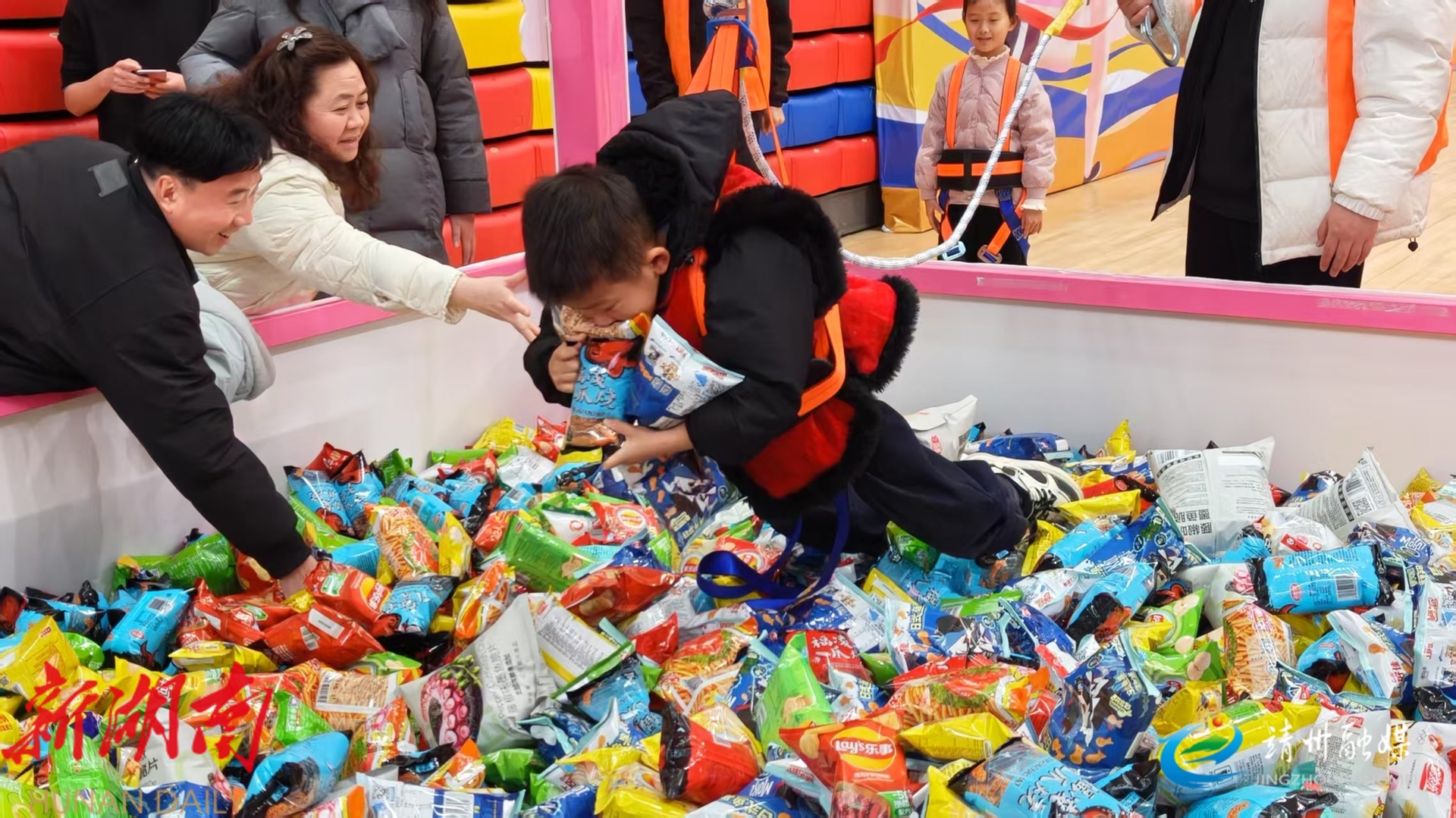 在“疯狂娃娃机”单人挑战项目现场,孩子们化身“小抓手”奋力捞取零食,父母在一旁轻声鼓劲、悉心守护;家长们参与踢毽子、抽陀螺等传统项目时,孩子们则用稚嫩的呐喊加油助威,眼神里满是崇拜。一个个暖心瞬间,一次次欢呼喝彩,都成为新春团圆里最动人的印记。