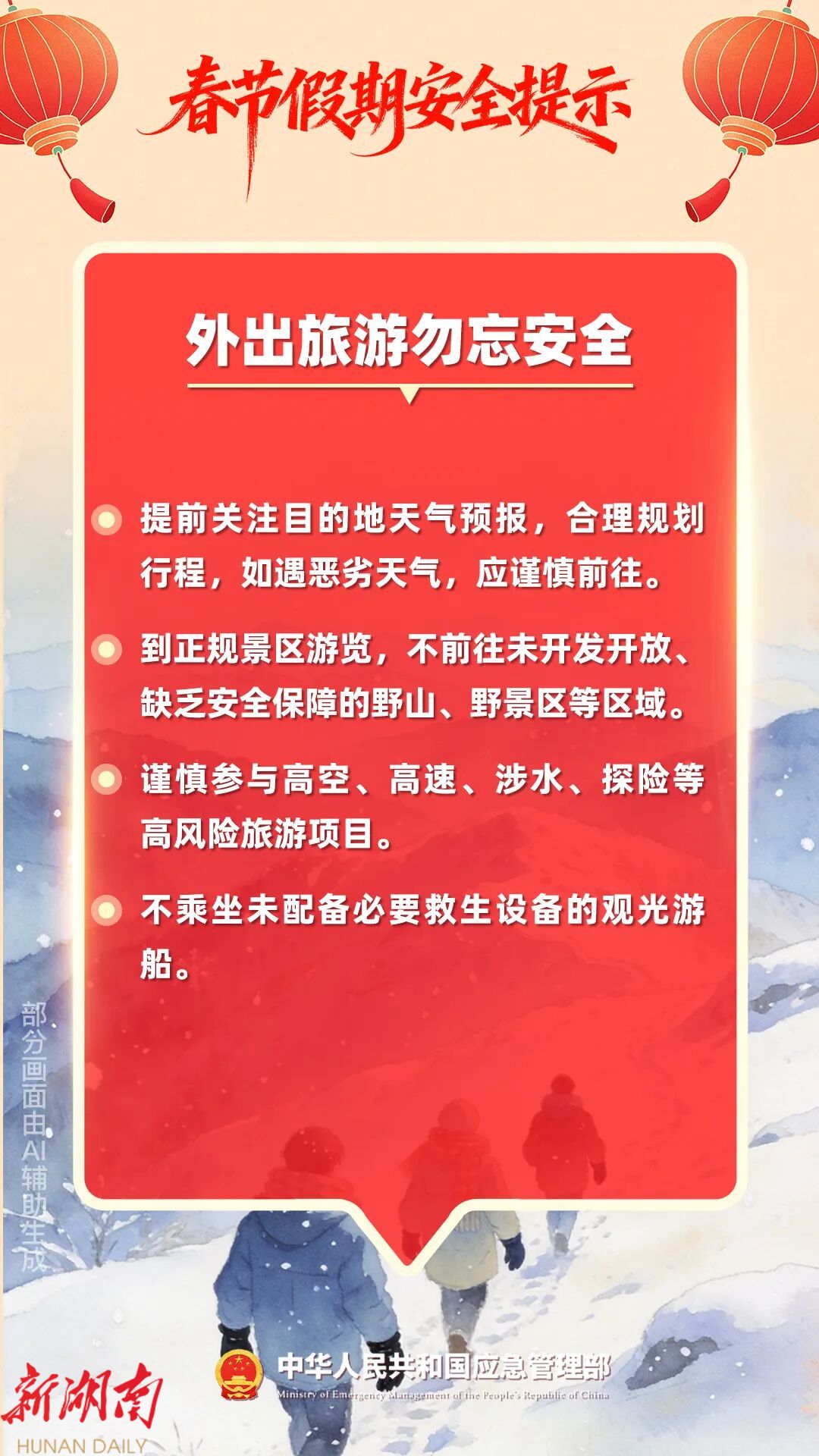 各类风险隐患交织叠加 安全生产须臾不可放松 这份春节假期安全提示 请查收! ↓ ↓ ↓ 防风险、除隐患、遏事故 平安过春节