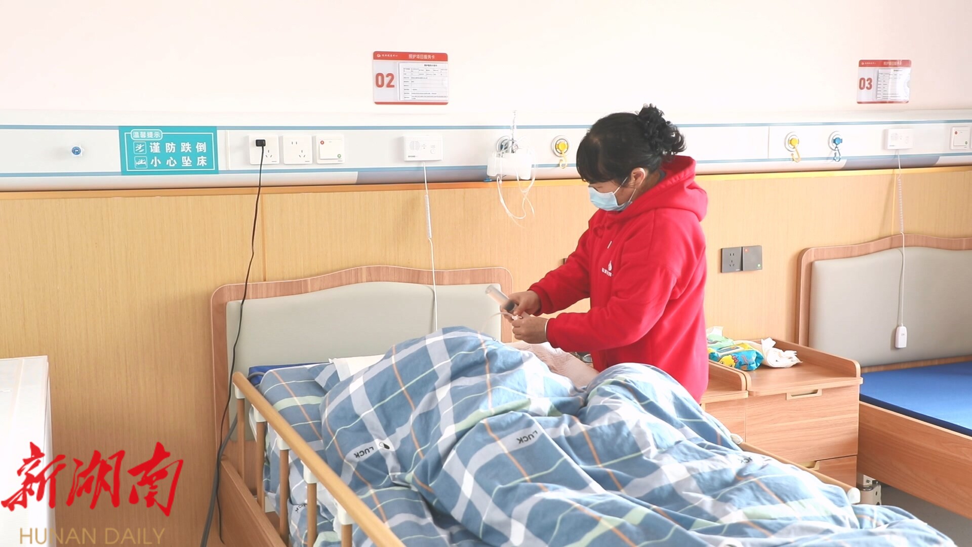 曹奶奶:“颐养中心的生活饮食营养丰富、搭配合理。中心的环境卫生整洁,护工对我们像亲人一样非常关心,日常洗衣、照料等服务都十分贴心。护工们不怕苦、不怕累,他们的职业道德是非常高尚的。”