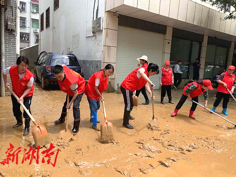 桂东县融媒体中心6月3日讯(通讯员 陈飞群)6月1日,我县遭受特大暴雨袭击,造成洪涝灾害,迎宾路作为城区主干道,受灾较为严重,给市民出行、车辆往来带来极大不便。桂东团代表联络站第一时间联合县星火志愿者协会一行30余人前往迎宾路开展受损道路淤泥清理、路面清洗等抗灾救灾志愿服务活动。经过2个小时的持续奋战,道路基本恢复畅通。