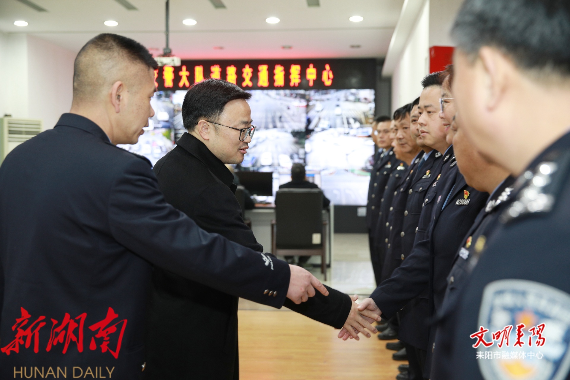 耒阳融媒2月18日讯(记者 袁成龙 曾志明) 2月18日上午,市委书记张润槐专程到市公安局交警大队督导春节保畅通工作,看望慰问坚守岗位的一线公安交警,并通过他们向广大公安交警拜年,致以节日问候和新春祝福。