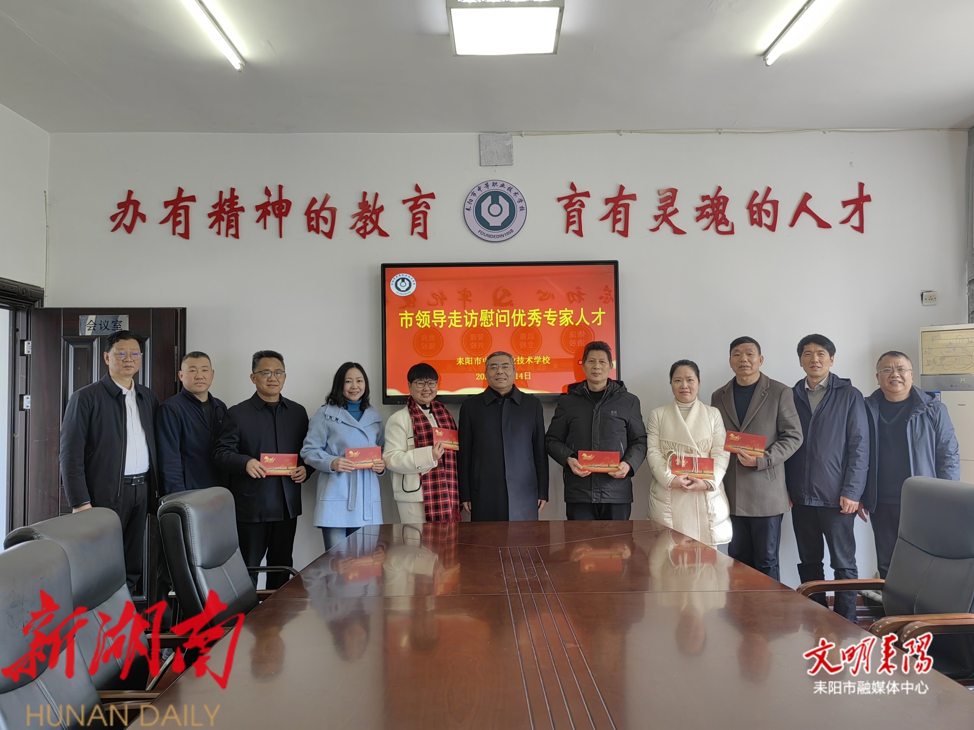 耒阳融媒2月15日讯(记者 刘晗) 2月14日,市委常委、市纪委书记、市监委主任钟斌来到耒阳市中等职业技术学校,代表市委、市政府慰问优秀专家人才,为他们送去新春的问候与祝福。