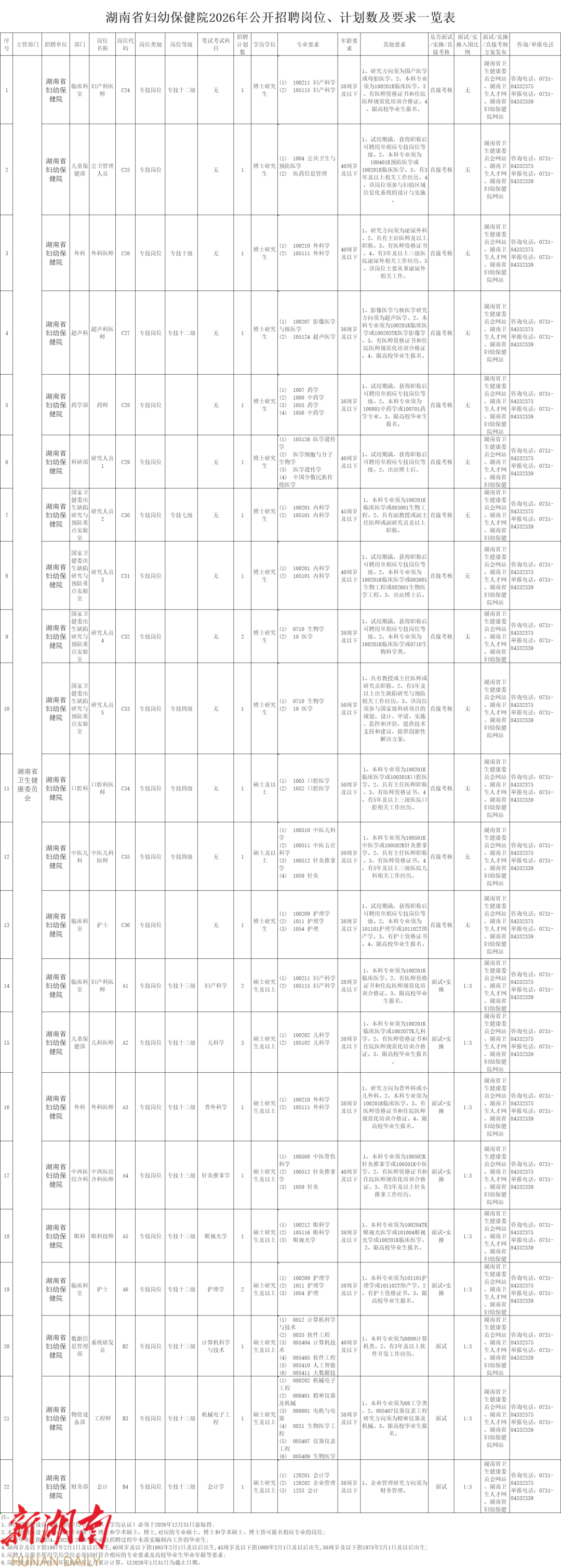 湖南省妇幼保健院2026年公开招聘公告