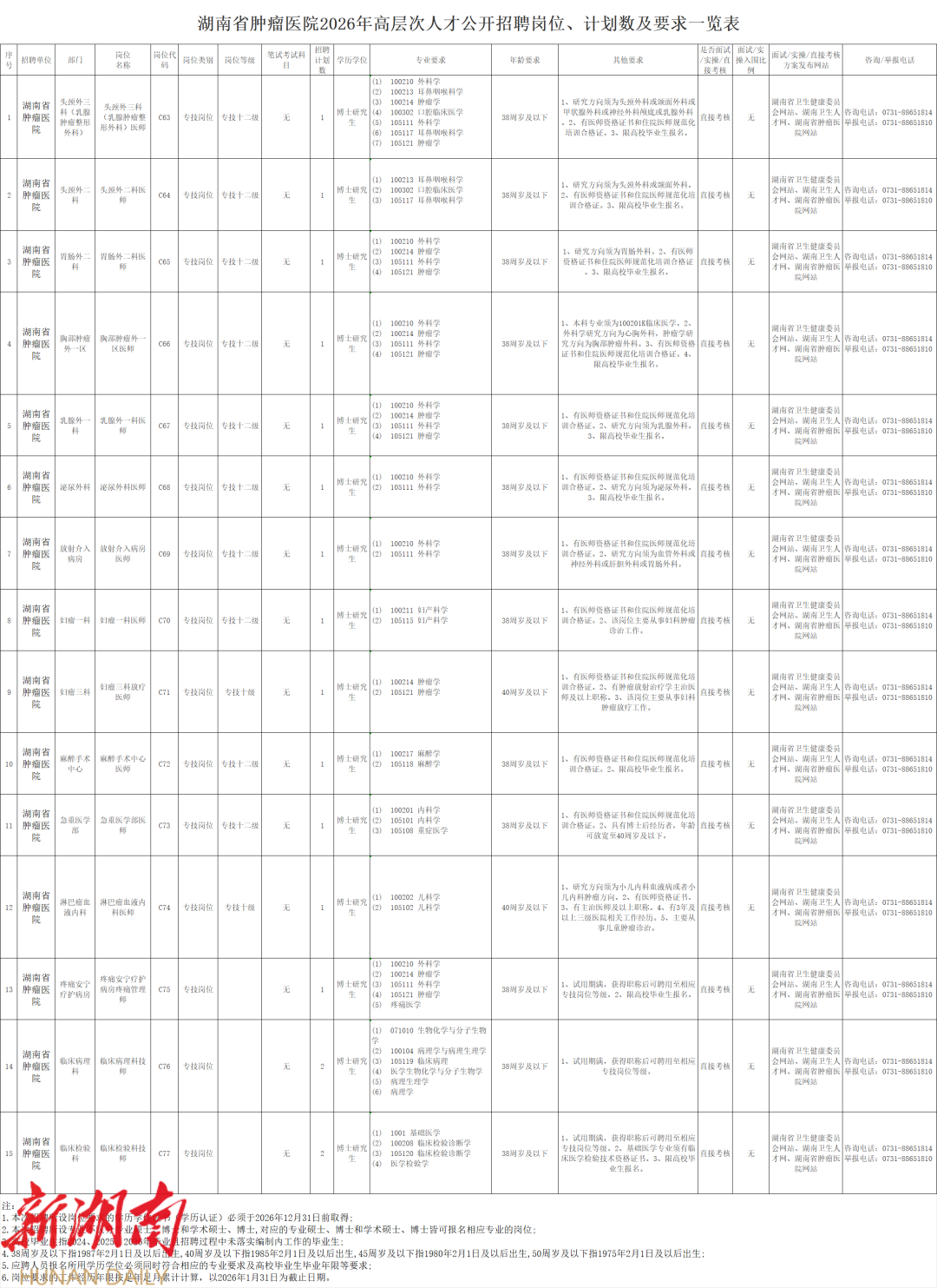 湖南省肿瘤医院2026年高层次人才公开招聘公告
