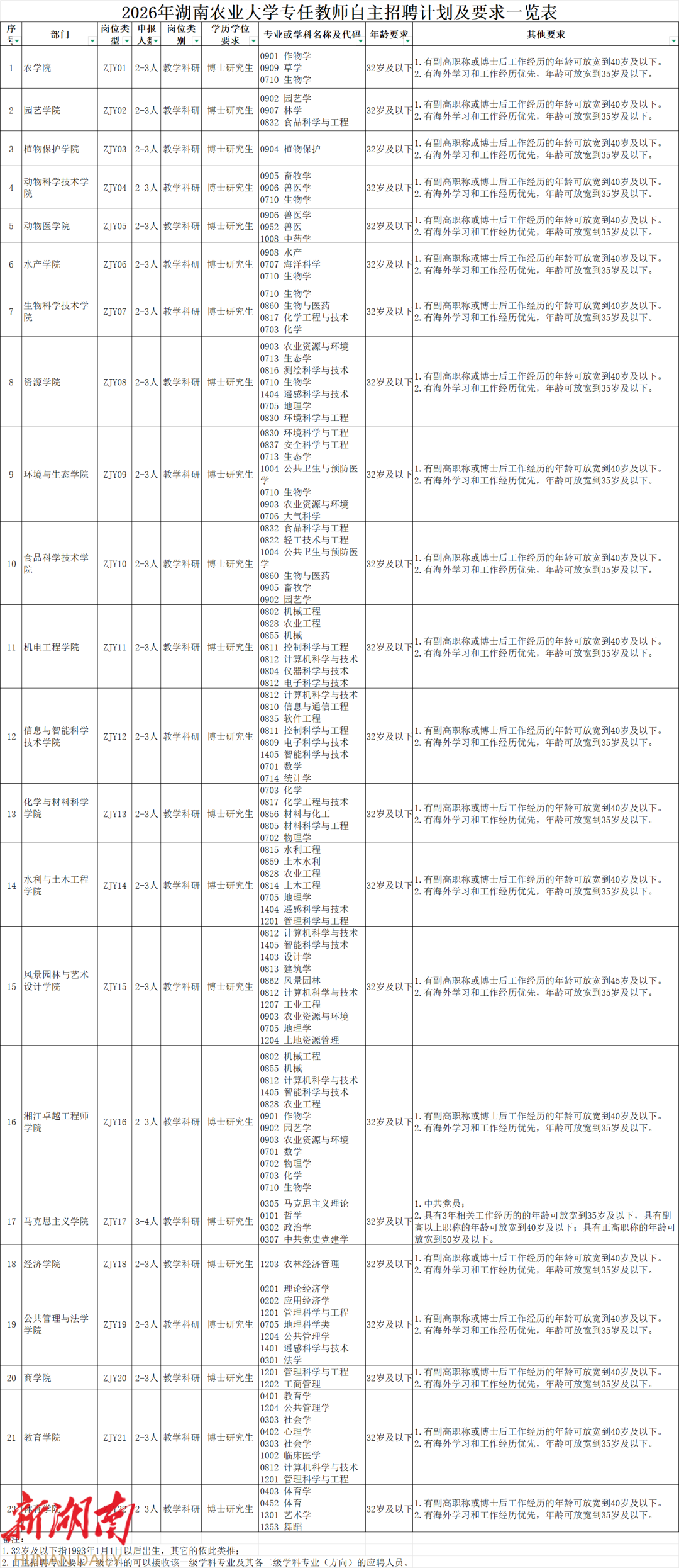 湖南农业大学2026年人才招聘公告