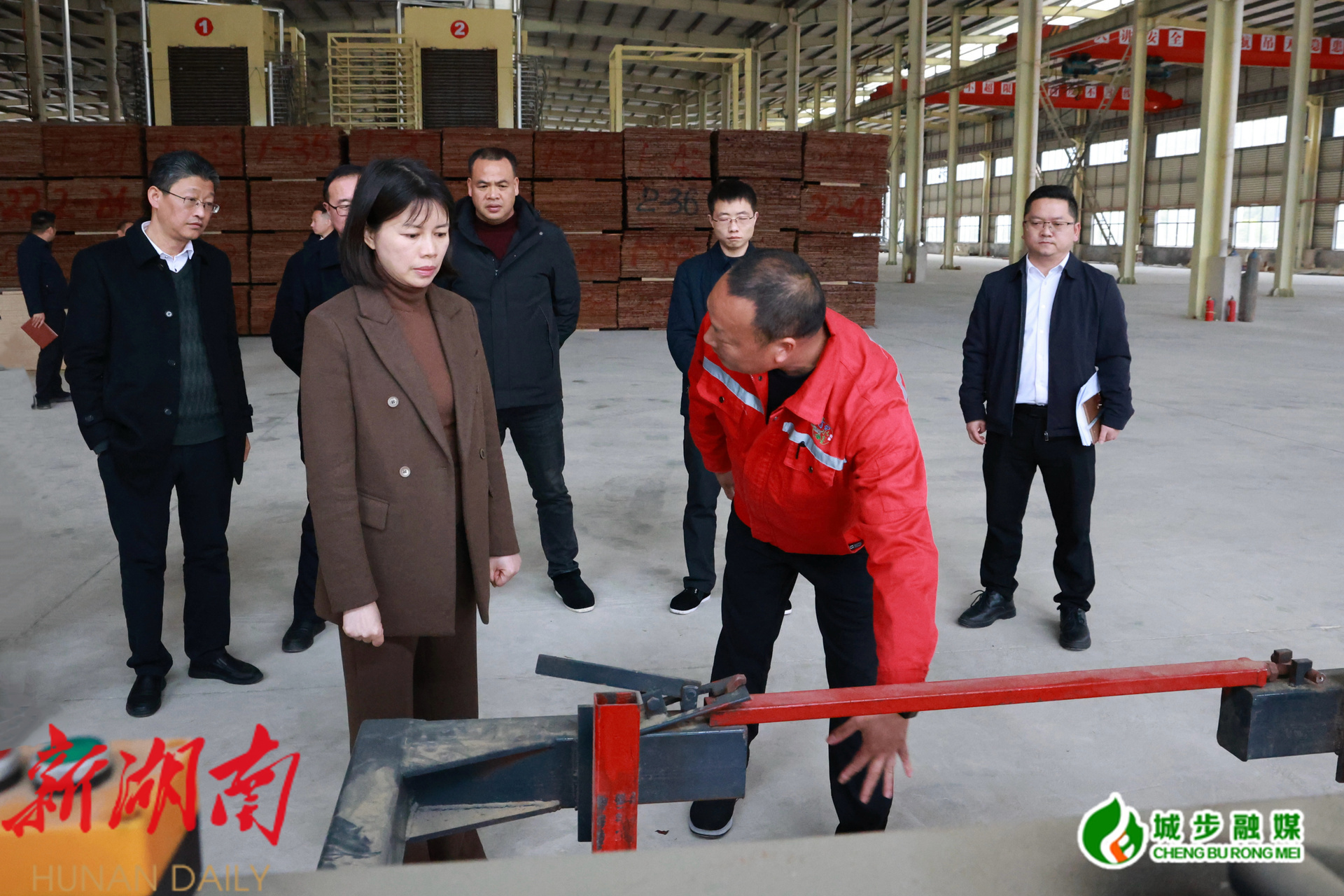 在城步青泉农林有限公司,王慧敏一行深入企业车间,实地了解企业生产线运行、竹制品产业链延伸及未来发展规划等情况。