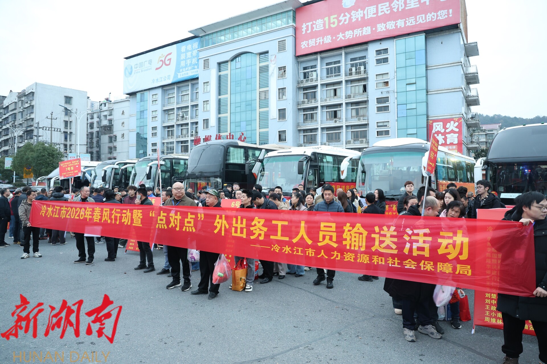 湖南日报·新湖南客户端2月25日讯(通讯员 朱俊峰)春风送暖润民心,精准服务助远航。25号,由冷水江市人社局牵头开展的2026年春风行动暨“点对点”外出务工人员集中输送活动启动,11辆返岗大巴满载400余名务工群众,从布溪街道出发,奔赴广州、深圳、东莞等地,架起“从家门到厂门”的便捷通道,护航群众开启奋斗新程。