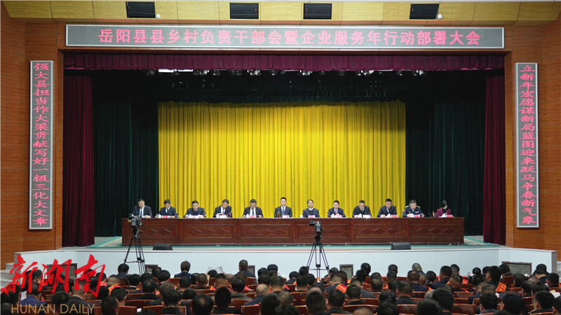 湖南日报·新湖南客户端2月26日讯(通讯员 罗爽 周星亮 周昱君) 2月25日,岳阳县召开县乡村负责干部会暨企业服务年行动部署大会,深入贯彻党中央决策部署和省委、市委工作要求,锚定“三高四新”美好蓝图,坚持“1376”总体思路,动员全县上下聚焦“一极三化”、推进“七大提升”,确保今年工作开好局、起好步。县委书记肖湘晖出席并讲话,县委副书记、县长吴光文主持会议。
