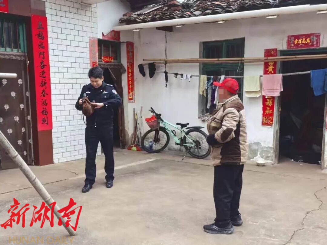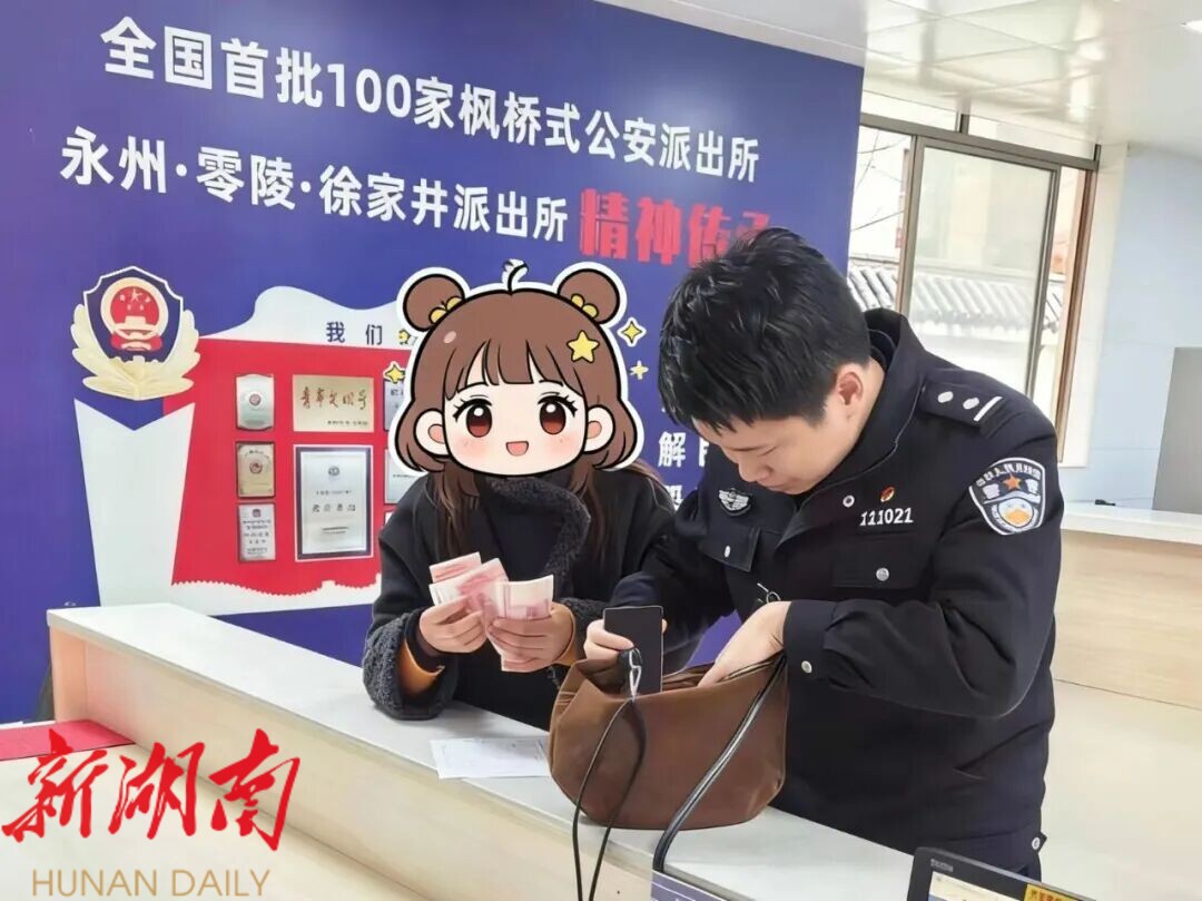 湖南日报·新湖南客户端2月26日讯(通讯员 唐云杰 尹滋贤)“真没想到这么快就能找回来,里面的账本要是丢了,我这生意都没法做了!”2月25日中午,罗某芳从零陵公安分局徐家井派出所民警钟佶宏手中接过失而复得的棕色挎包时,激动地向民警连声道谢。